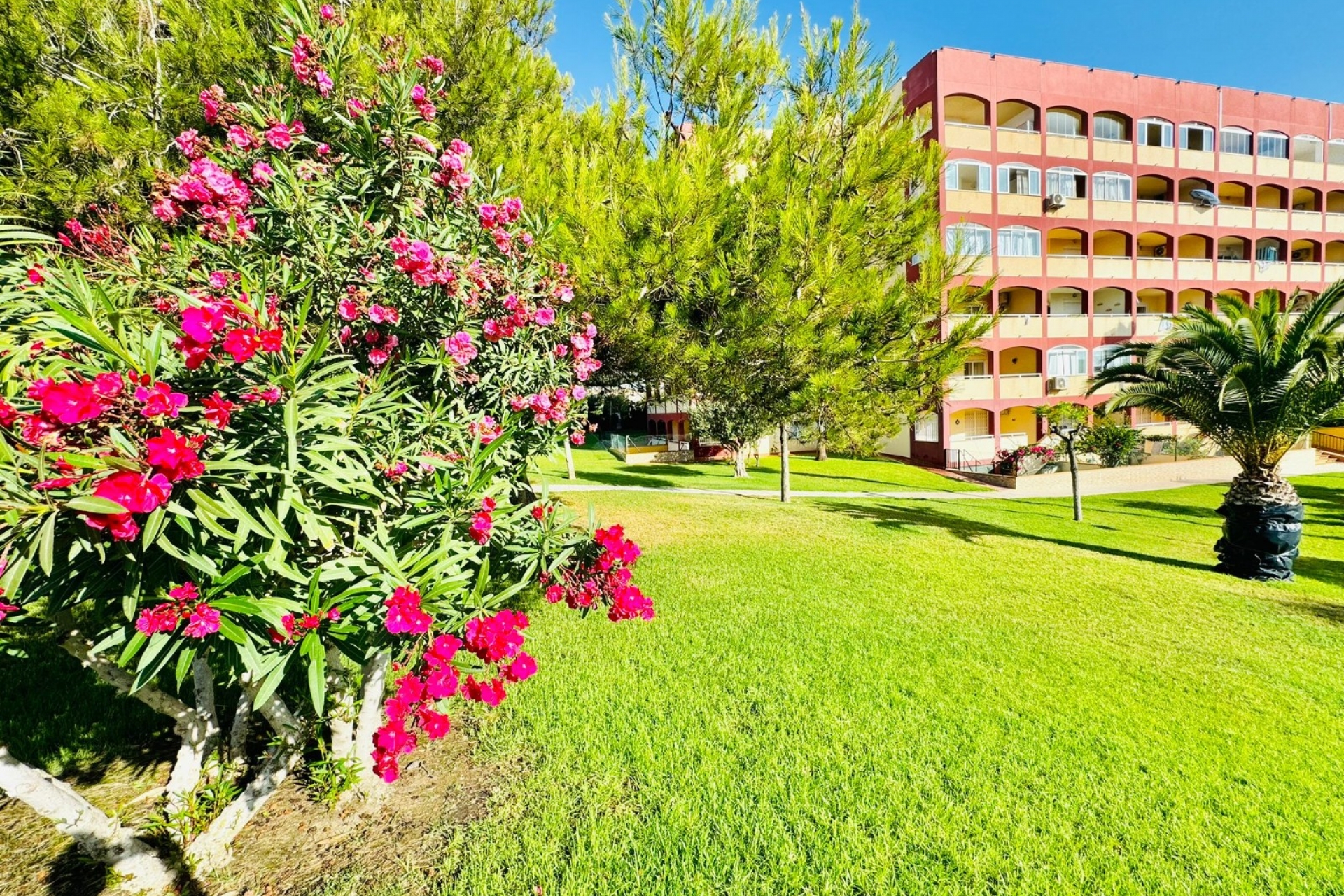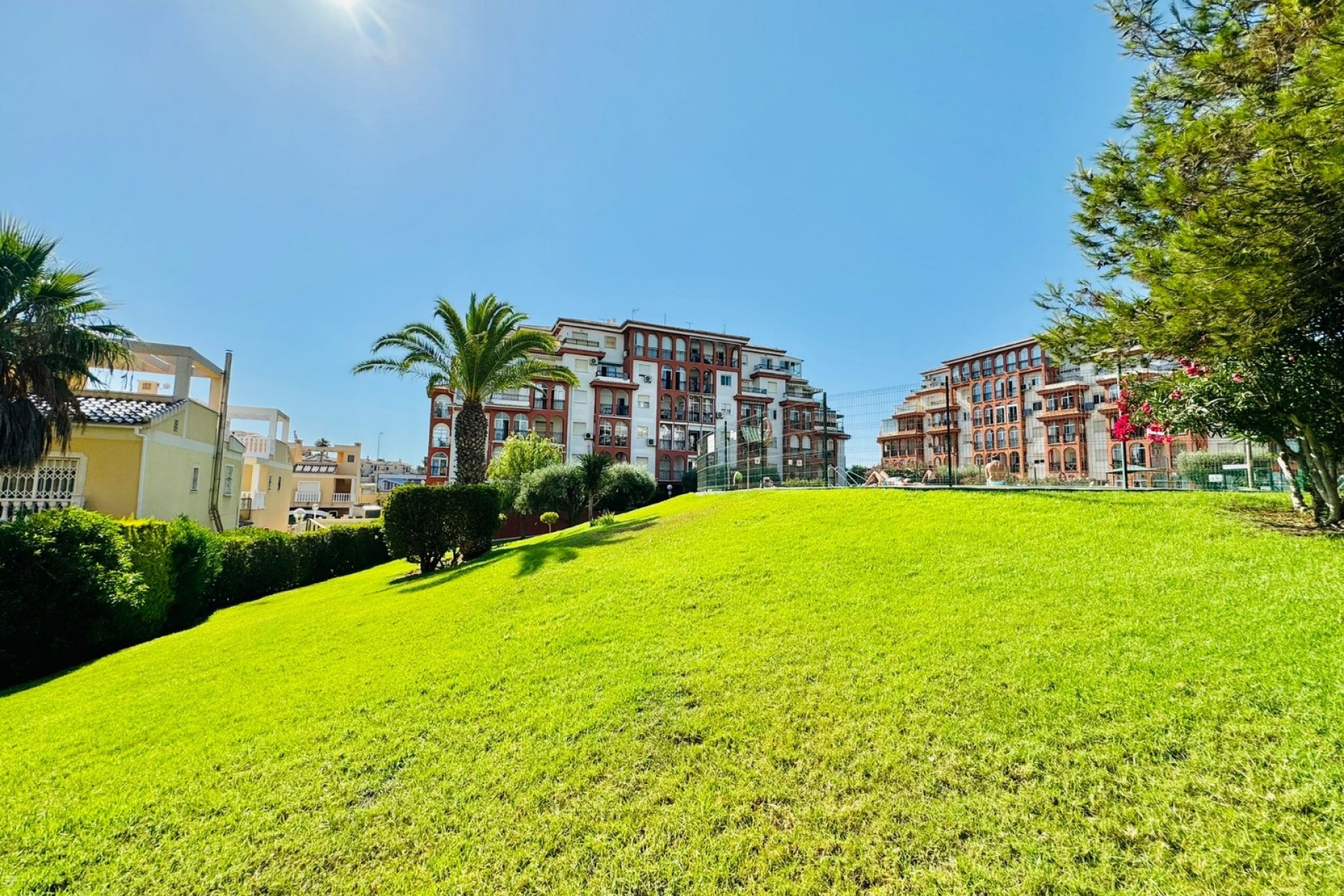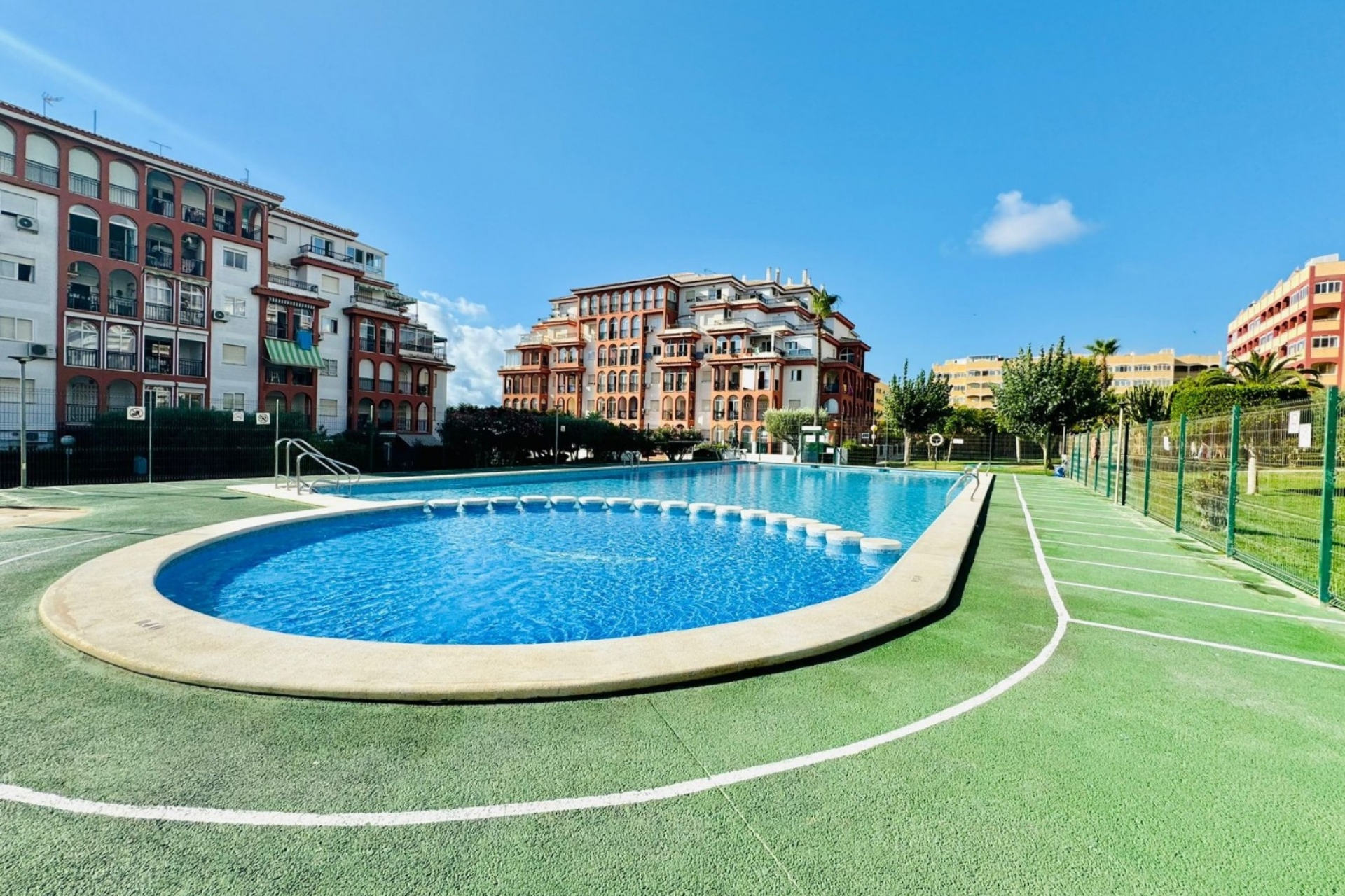 Exclusive use of residents large swimming pool with green leisure area.