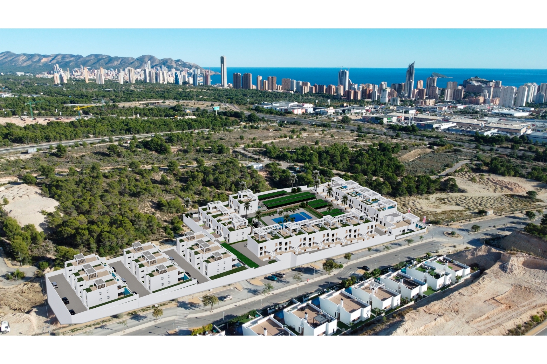 We recommend modern bungalows located on a hill in the Finestrat area, one of the best areas of the Costa Blanca, with panoramic views of the countryside and the sea.