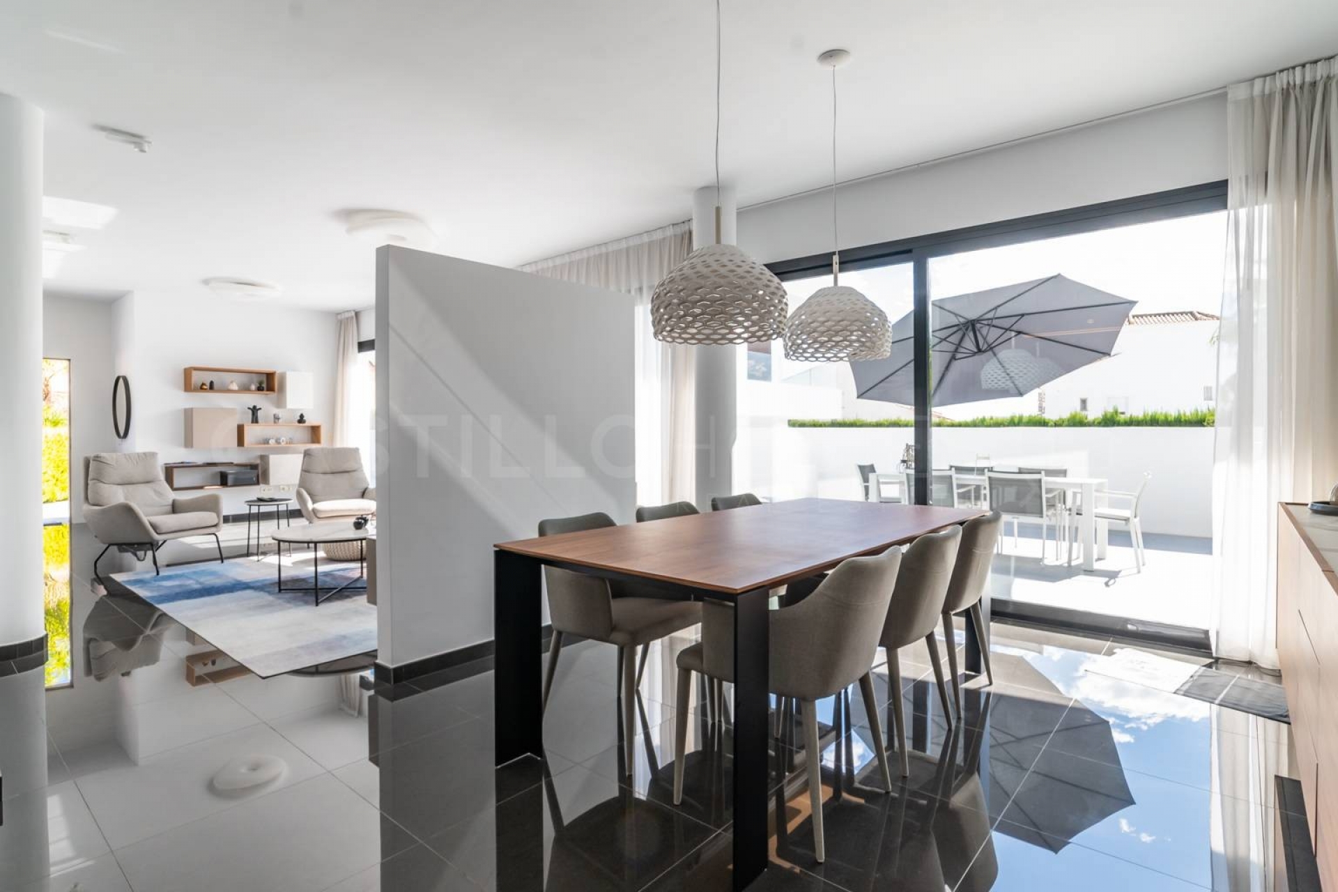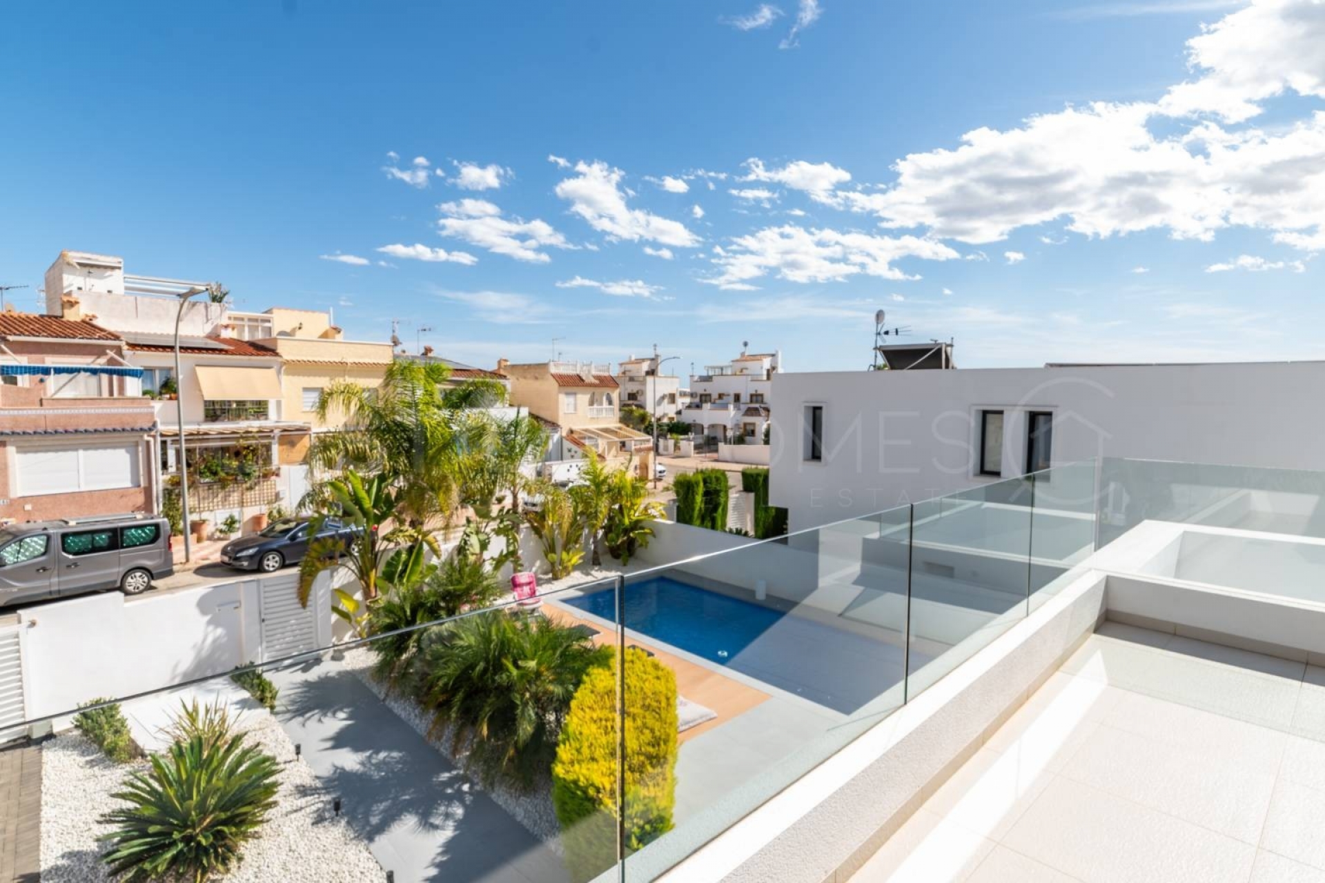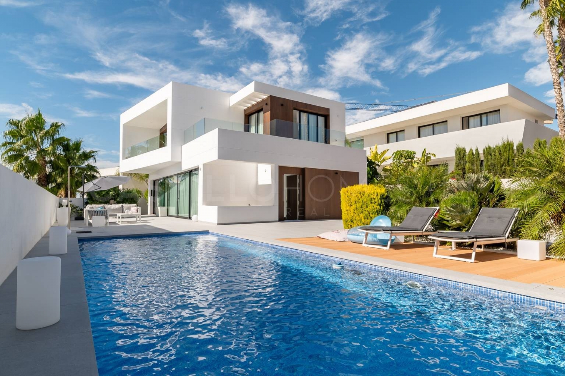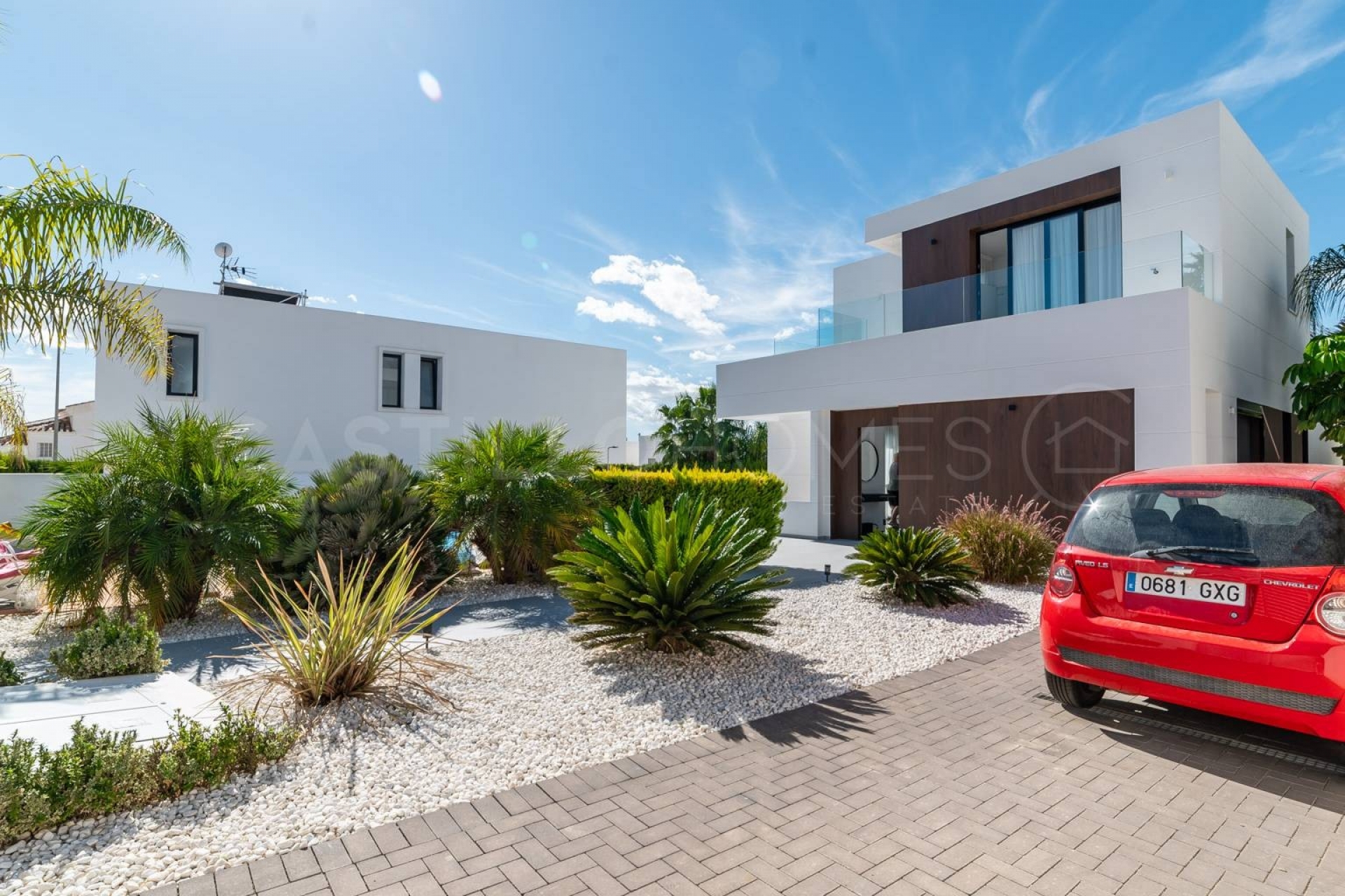 Welcome to this sumptuous villa located in the heart of the urbanization of La Marina, close to San Fulgencio and Guardamar. Built in 2016, this luxurious residence stands majestically on a 500 square meter plot, where elegance and sophistication blend harmoniously with lush greenery evoking a tropical style and a sparkling 10-meter swimming pool.