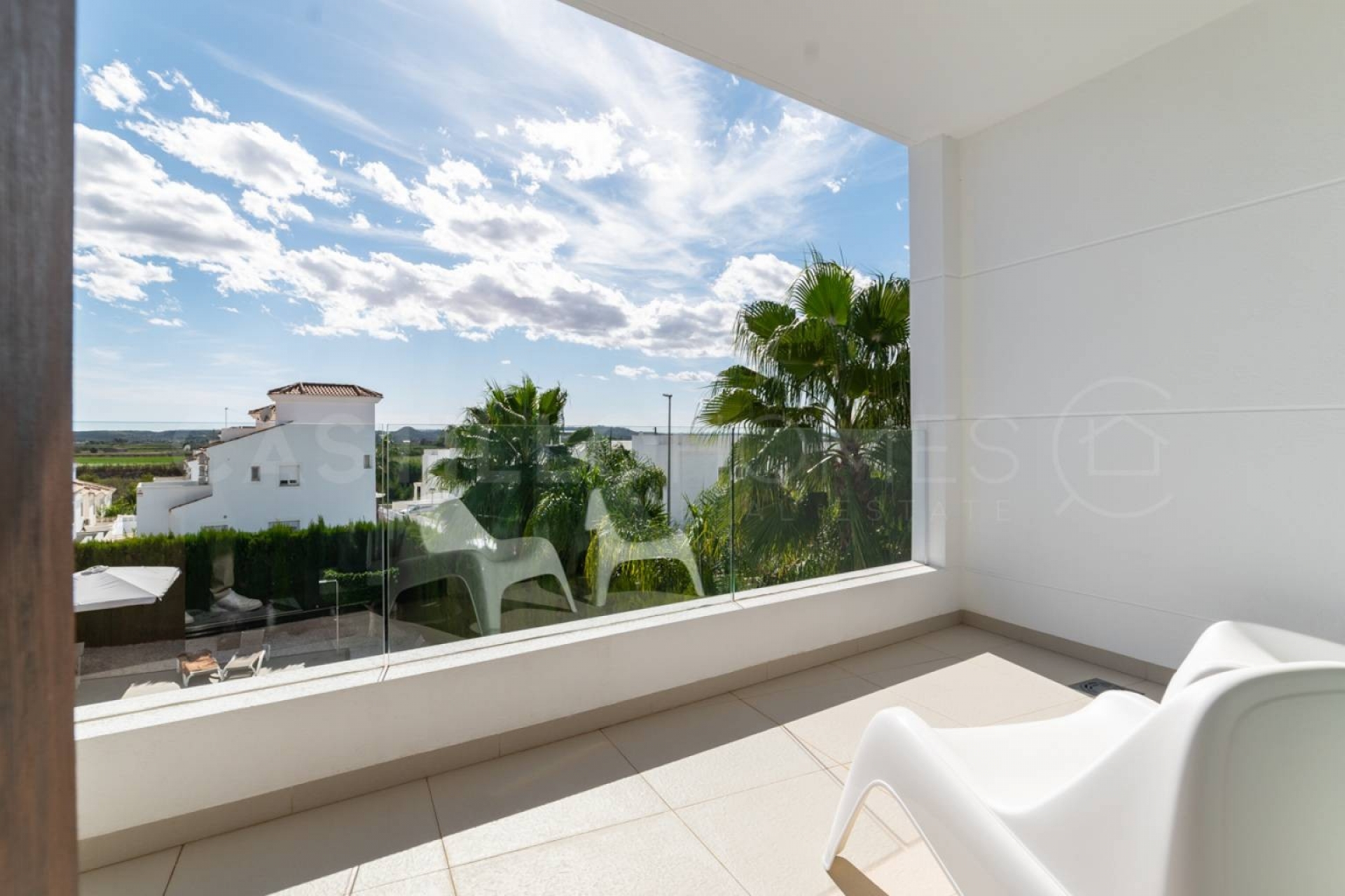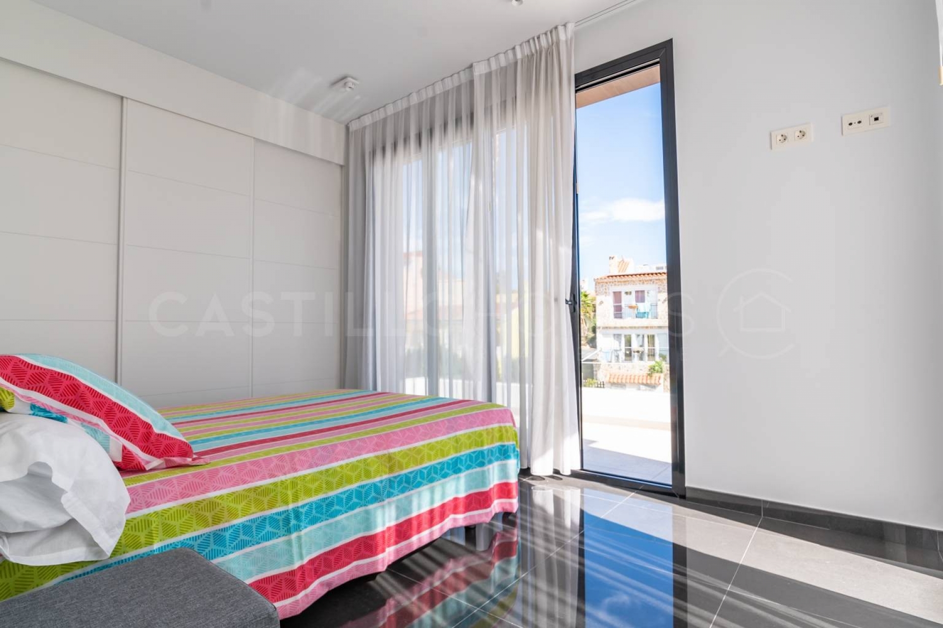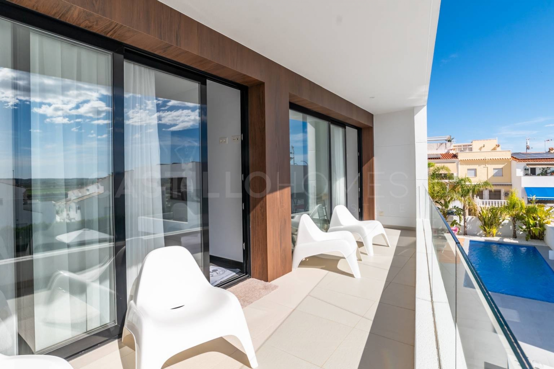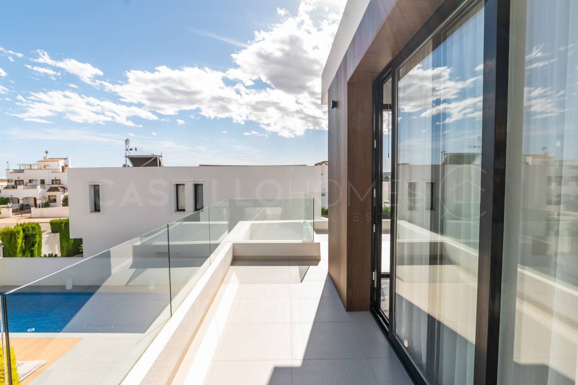 Welcome to this sumptuous villa located in the heart of the urbanization of La Marina, close to San Fulgencio and Guardamar. Built in 2016, this luxurious residence stands majestically on a 500 square meter plot, where elegance and sophistication blend harmoniously with lush greenery evoking a tropical style and a sparkling 10-meter swimming pool.