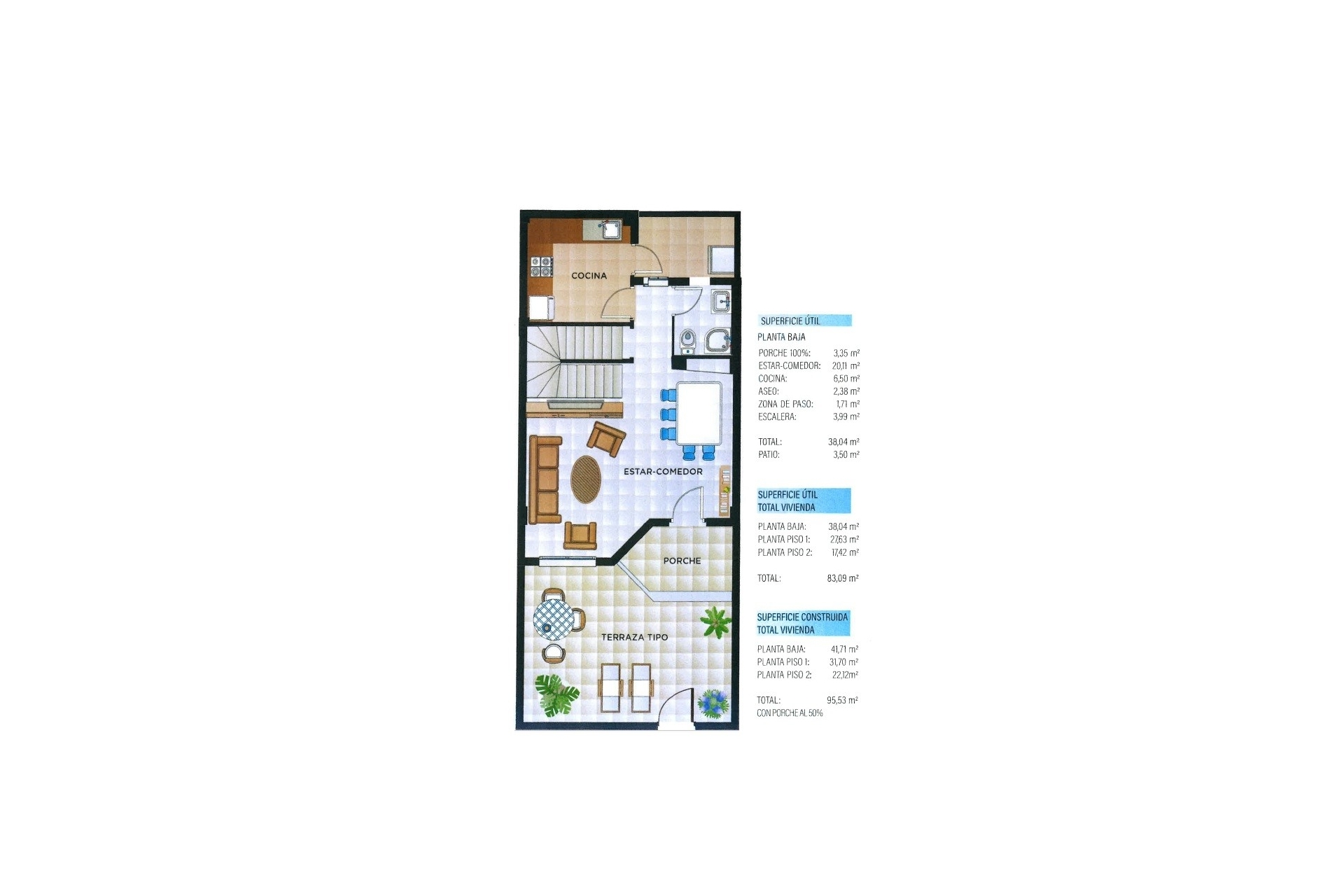 New bungalow located in a gated community with a swimming pool, only 150m from the Levante beach in Santa Pola.