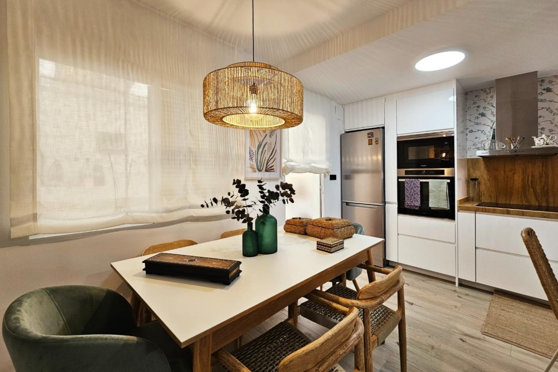 On the ground floor of the property, living room with dining area, modern fully equipped kitchenette, large utility room, toilet.