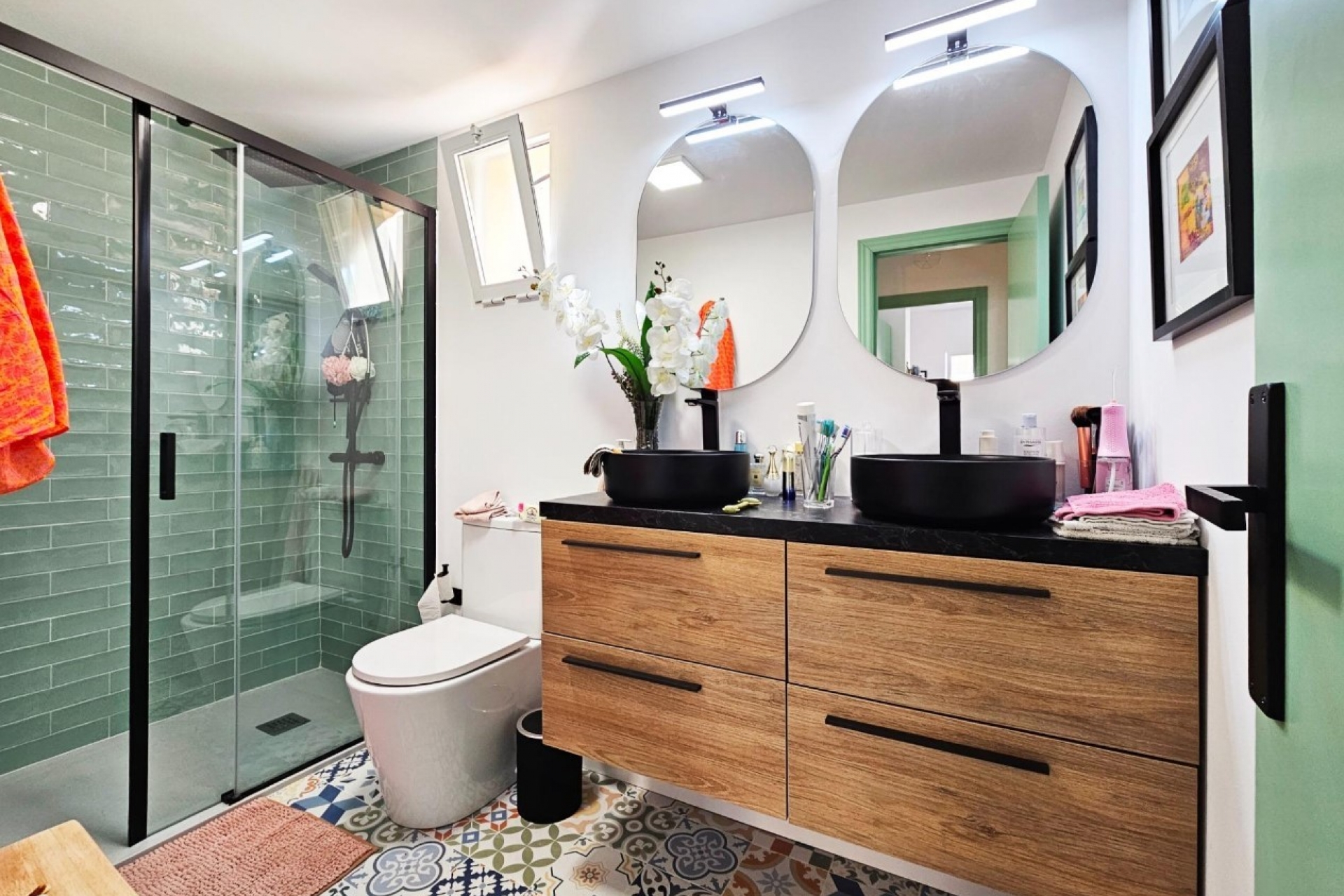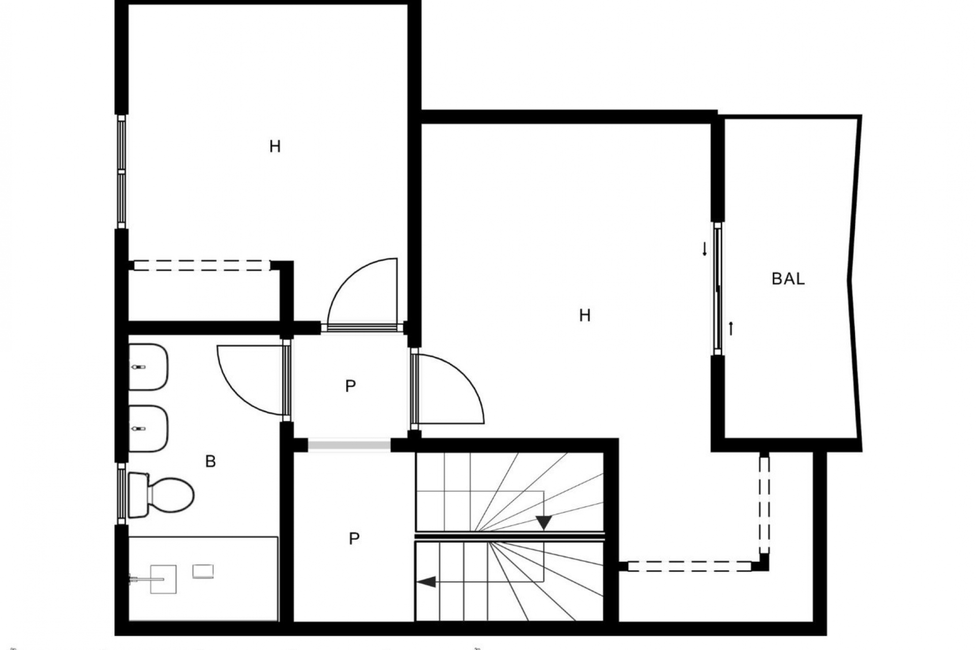 On the second floor, two bedrooms with built-in wardrobes, one with access to the terrace, bathroom with shower, daylight.