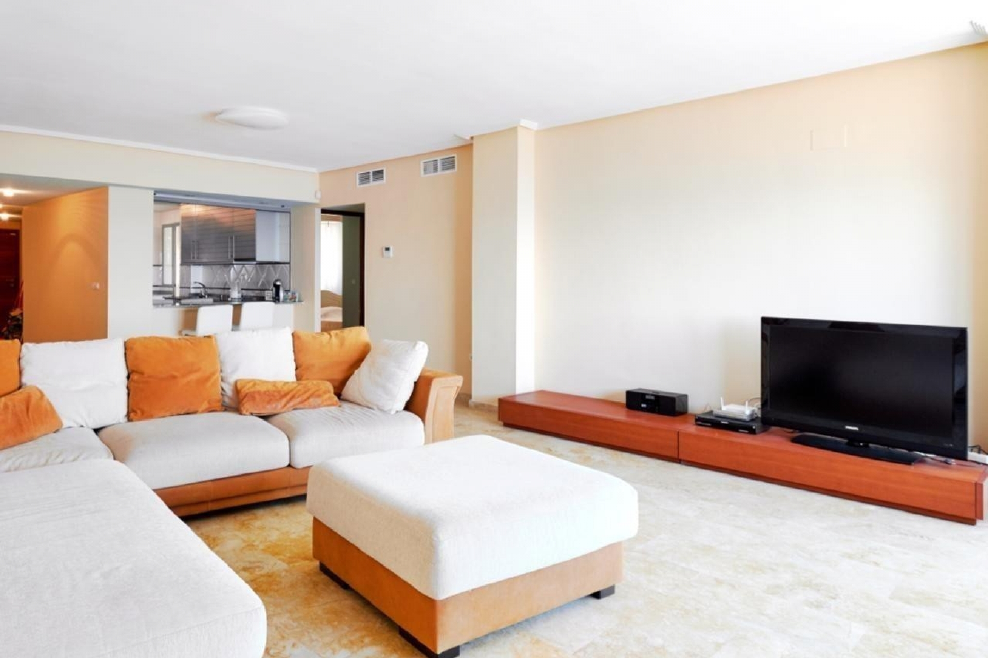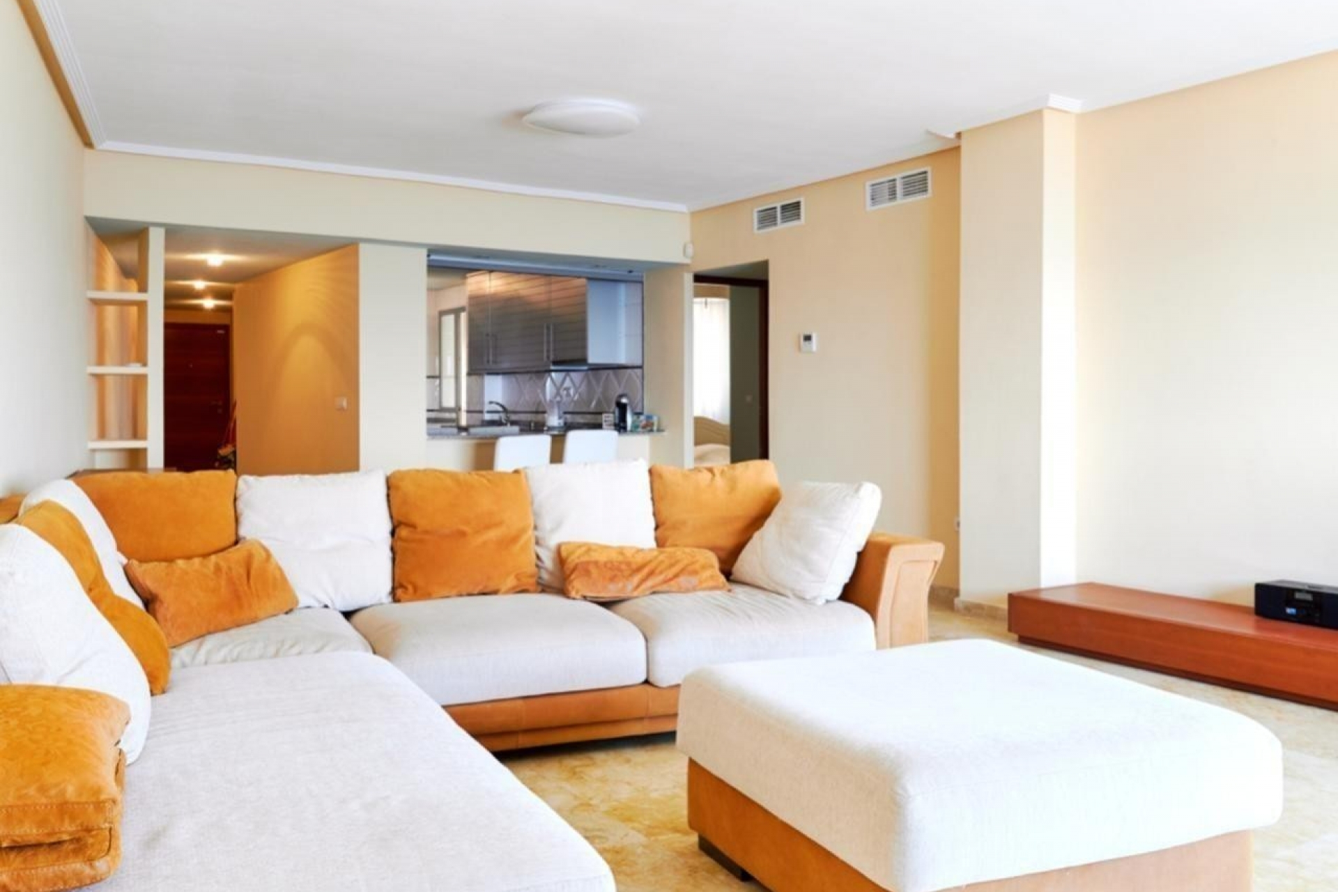 This impressive large apartment, located on the seafront, offers spectacular views of the Mediterranean from the living room, terrace, master bedroom and kitchen. A true luxury for those looking to enjoy the coastal landscape every day.