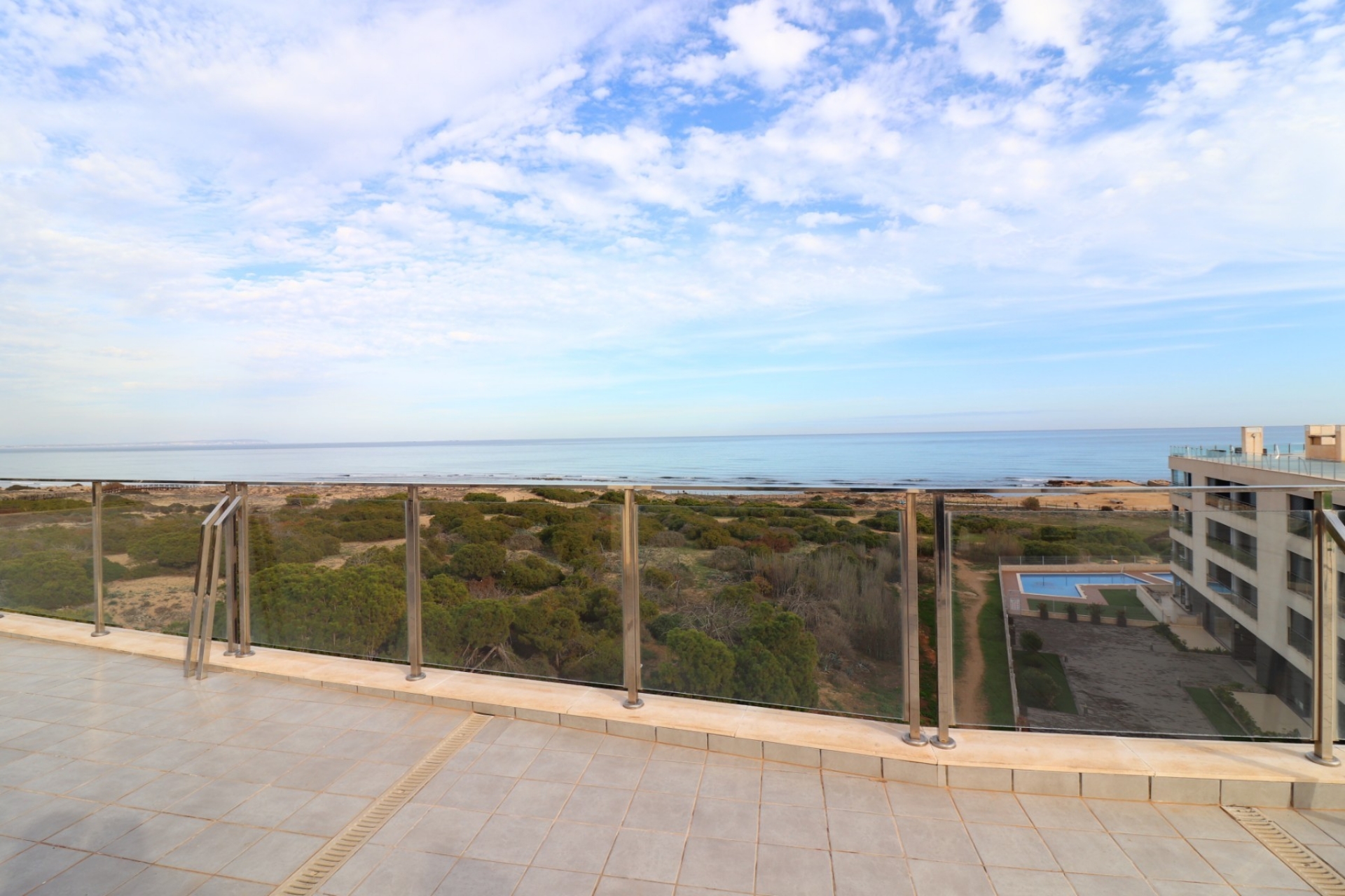 Esta orientación sur, un dormitorio, ático en La Mata con vistas al mar, está situado a sólo 50 metros de un hermoso tramo de playa ya 2 minutos a pie de una variedad de servicios. Situado en el tercer piso con ascensor en el bloque, esta propiedad ofrece comodidad, confort y unas vistas impresionantes de la costa. El apartamento cuenta con una terraza de entrada acristalada de fantástico tamaño, perfecta para disfrutar del clima mediterráneo durante todo el año. El salón comedor tiene puertas correderas acristaladas que dan a la terraza. La cocina americana equipada es ideal para la vida moderna, mientras que el dormitorio doble incluye su propia terraza y un baño en suite. Un cuarto de baño familiar independiente...