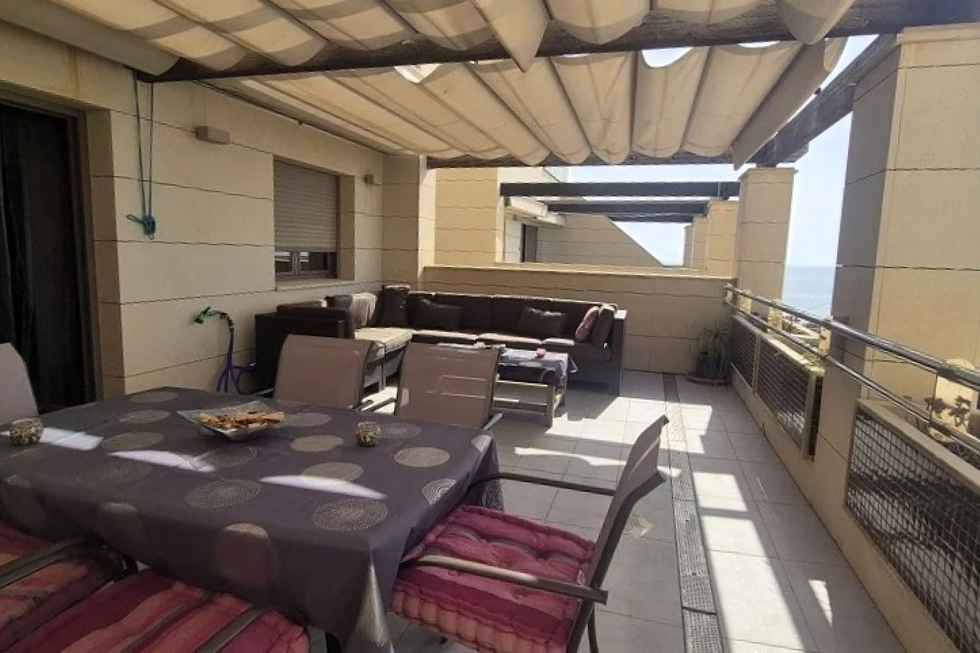 Desde el salón se accede a una gran terraza con hermosas vistas al mar, a la isla de Tabarca y a la costa.