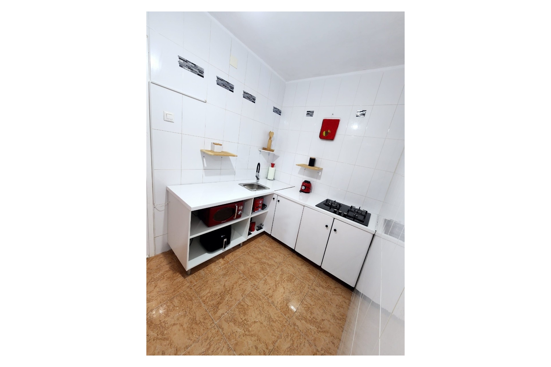 El apartamento cuenta con tres amplios dormitorios dobles. La cocina, totalmente equipada, es espaciosa e incluye una práctica despensa. También dispone de un baño con ducha. Esta propiedad es una excelente opción para quienes buscan una armoniosa combinación de tranquilidad y accesibilidad en una ubicación privilegiada.