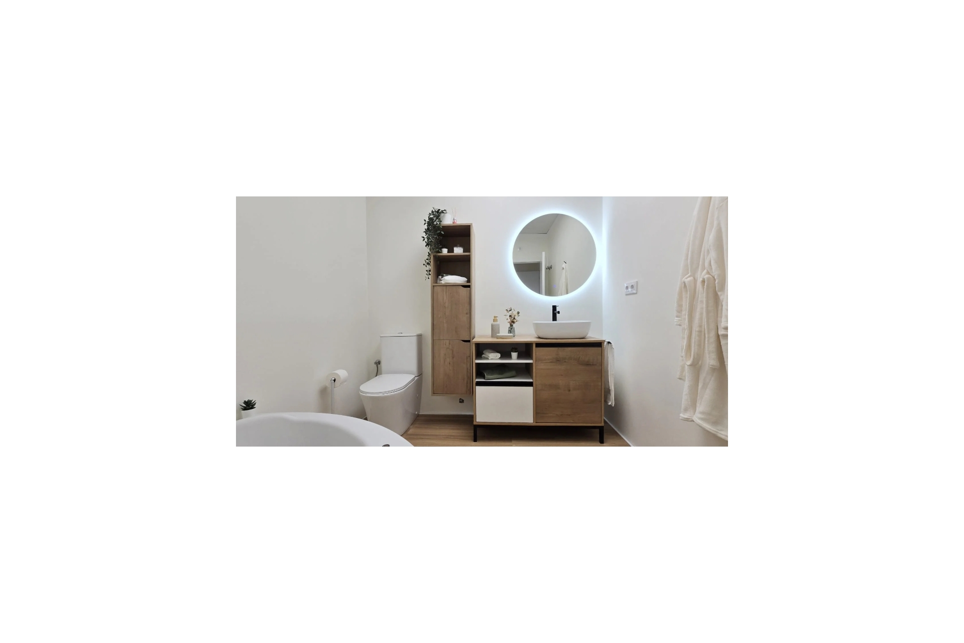 Este apartamento en planta baja, completamente renovado, sorprende por su acabado elegante y distribución funcional, creando un espacio perfecto tanto para el descanso como para la vida diaria. A solo unos pasos de una amplia playa de arena, ofrece todo el encanto de la vida costera, manteniendo al mismo tiempo tranquilidad y privacidad en una zona residencial apacible.