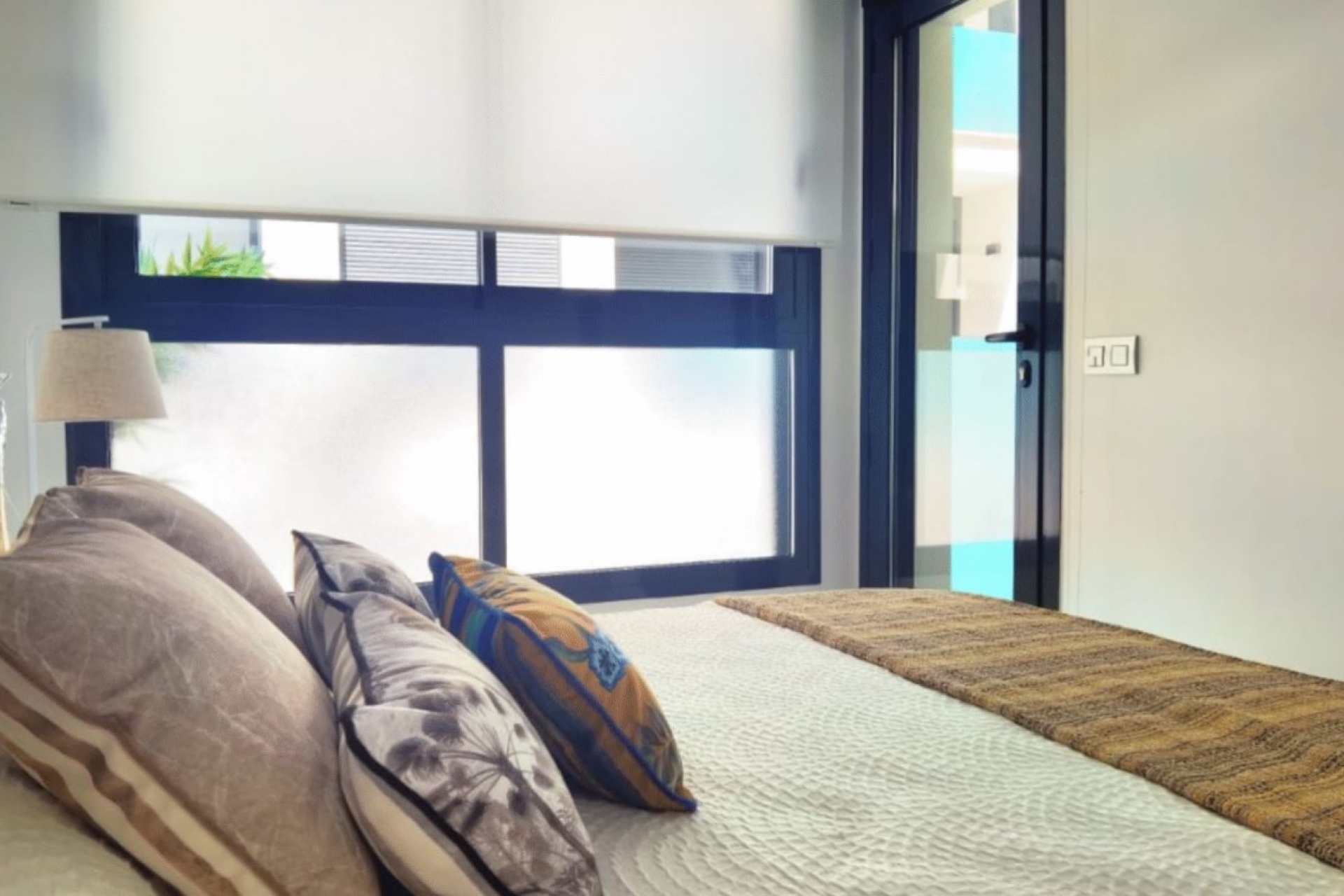 La propiedad dispone de dos dormitorios amplios con armarios empotrados, pensados para ofrecer confort y funcionalidad. El diseño interior, inspirado en el estilo escandinavo, combina tonos claros, líneas simples y una estética moderna y armoniosa.