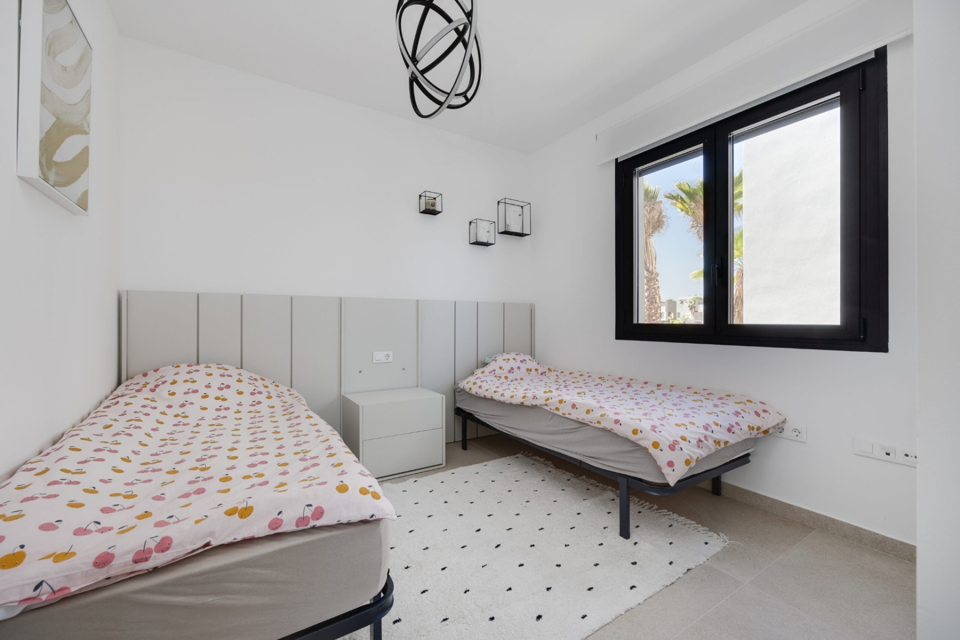Ubicada en un barrio tranquilo y rodeado de zonas verdes, la propiedad está cerca de restaurantes, cafeterías y tiendas locales. A poca distancia se encuentra un popular mercado diario con frutas, verduras y productos regionales frescos. A tan solo 300 metros se sitúa el Parque Natural de la Laguna de la Mata, ideal para paseos y actividades al aire libre. La playa de Guardamar del Segura está a unos 3 km, y el aeropuerto de Alicante se alcanza en aproximadamente 46 minutos en coche.