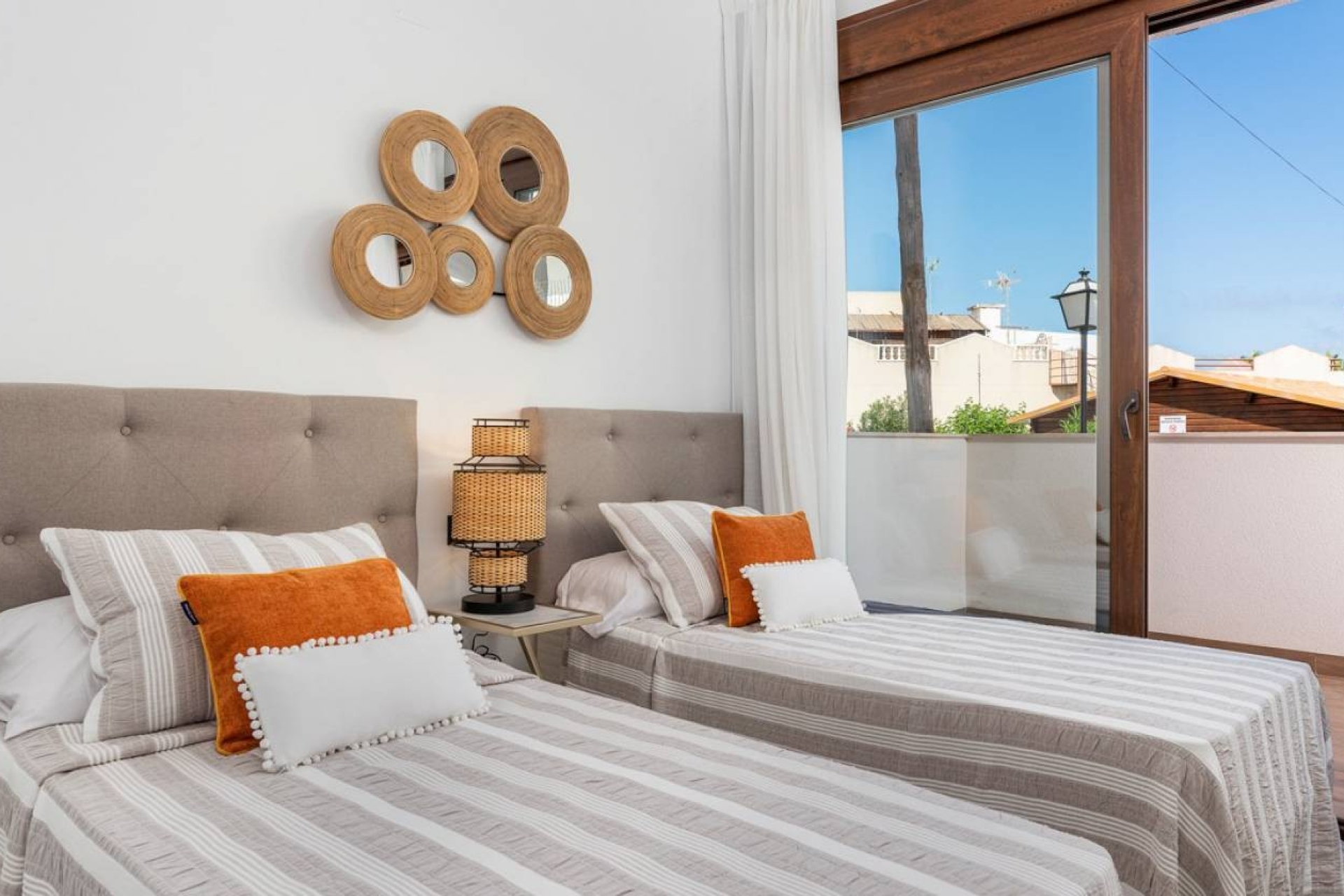 Bungalow de obra nueva en Torrevieja. Forma parte del lujoso residencial Los Balcones de Vivi, desde donde se disfruta de una vista espectacular a la laguna rosa de Torrevieja.