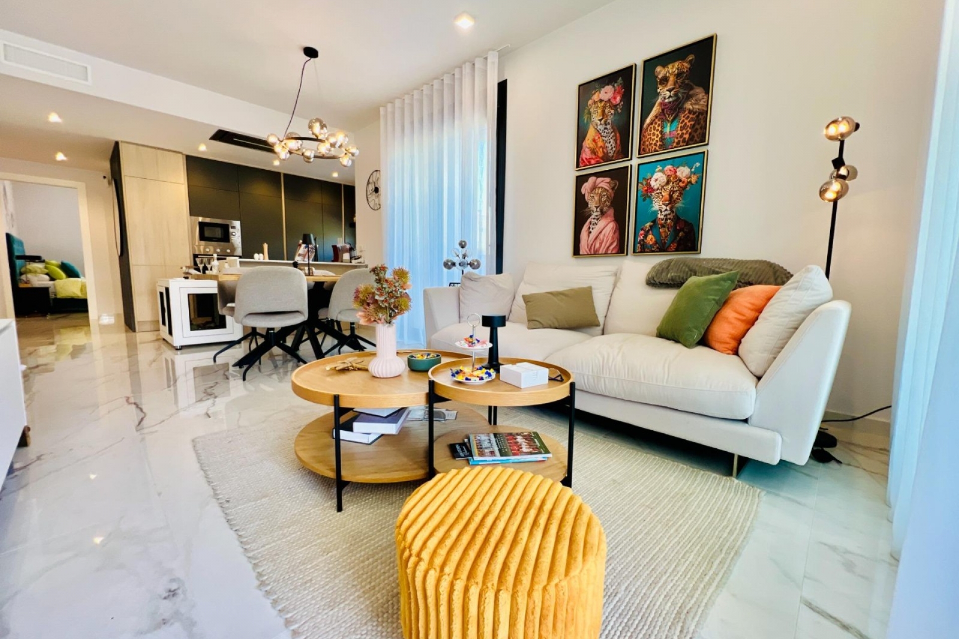 La vivienda forma parte de una cuidada comunidad privada con piscina y amplias zonas ajardinadas, perfectas para disfrutar del clima durante todo el año. El interior presenta un diseño contemporáneo con acabados de alta calidad, y se vende completamente amueblado con mobiliario de lujo, muy por encima de los estándares básicos, lo que permite una entrada inmediata sin necesidad de reformas ni inversiones adicionales.