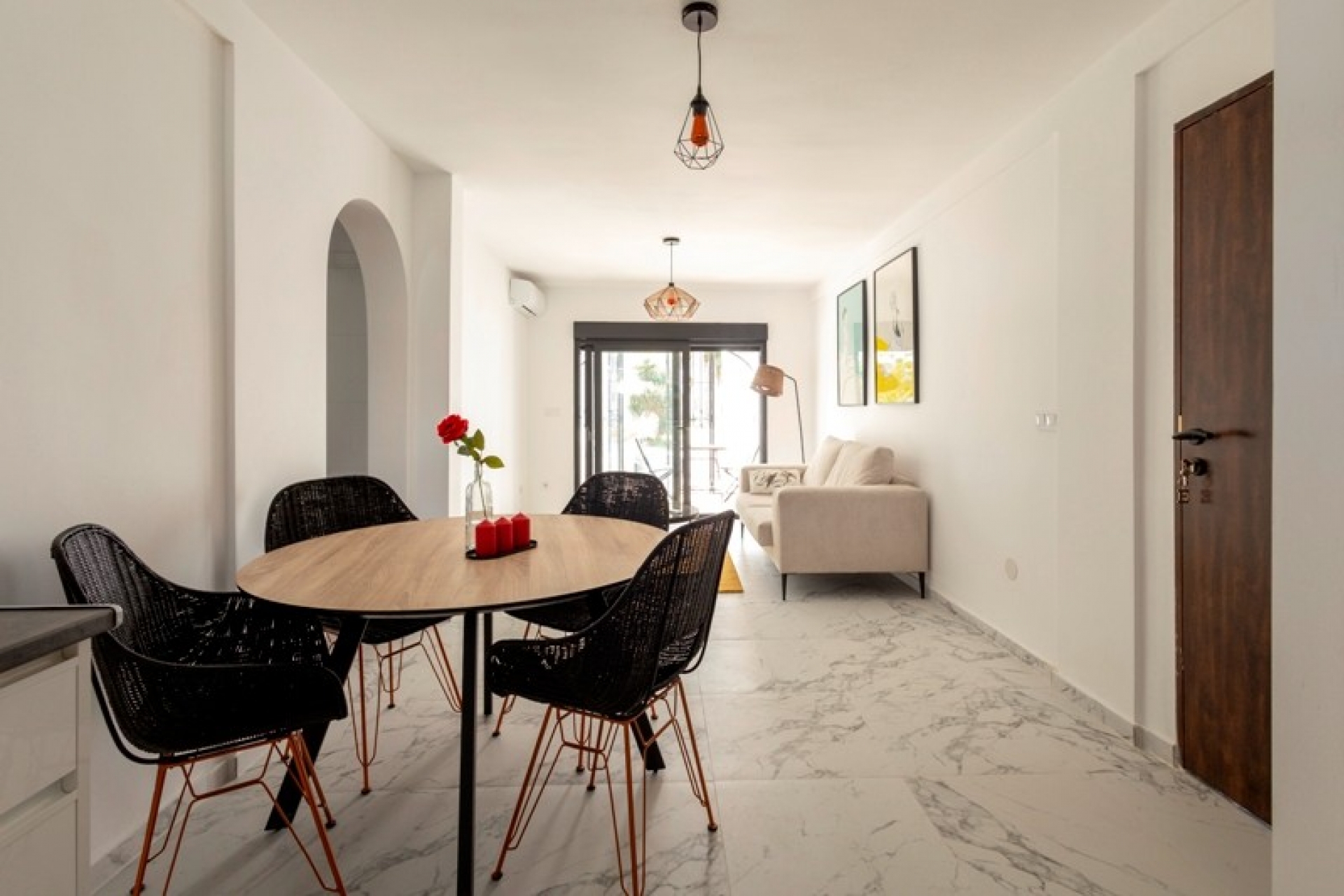 Fantástica planta baja en Calas Blancas totalmente reformada (estilo moderno) de 70m2 con 2 amplios dormitorios, salón, cocina abierta, baño con ducha, 50m2 de jardín, 7m2 de terraza, amueblado, aire acondicionado, orientación sur, frente a un parque comunitario, urbanización con 3 piscinas, amplio parking y pistas de fútbol y baloncesto. Distancia 800m. a la playa