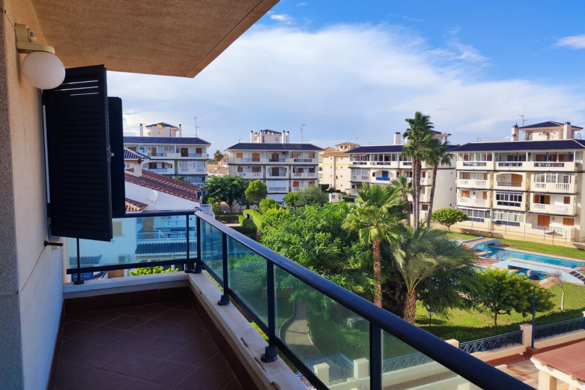 Este apartamento tiene una gran terraza con vistas al mar y a un parque verde en una urbanización privada. Esta urbanización dispone de dos piscinas para uso exclusivo de los residentes.