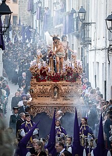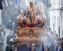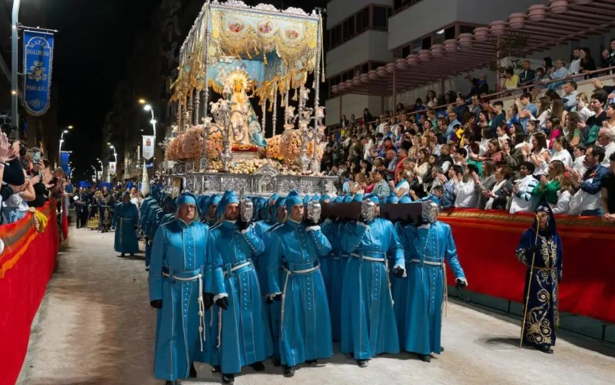 Podczas procesji, uczestnicy ubrani w charakterystyczne stroje, w tym tuniki i kaptury zwane capirotes, niosą ciężkie platformy z figurami religijnymi, znane jako pasos.