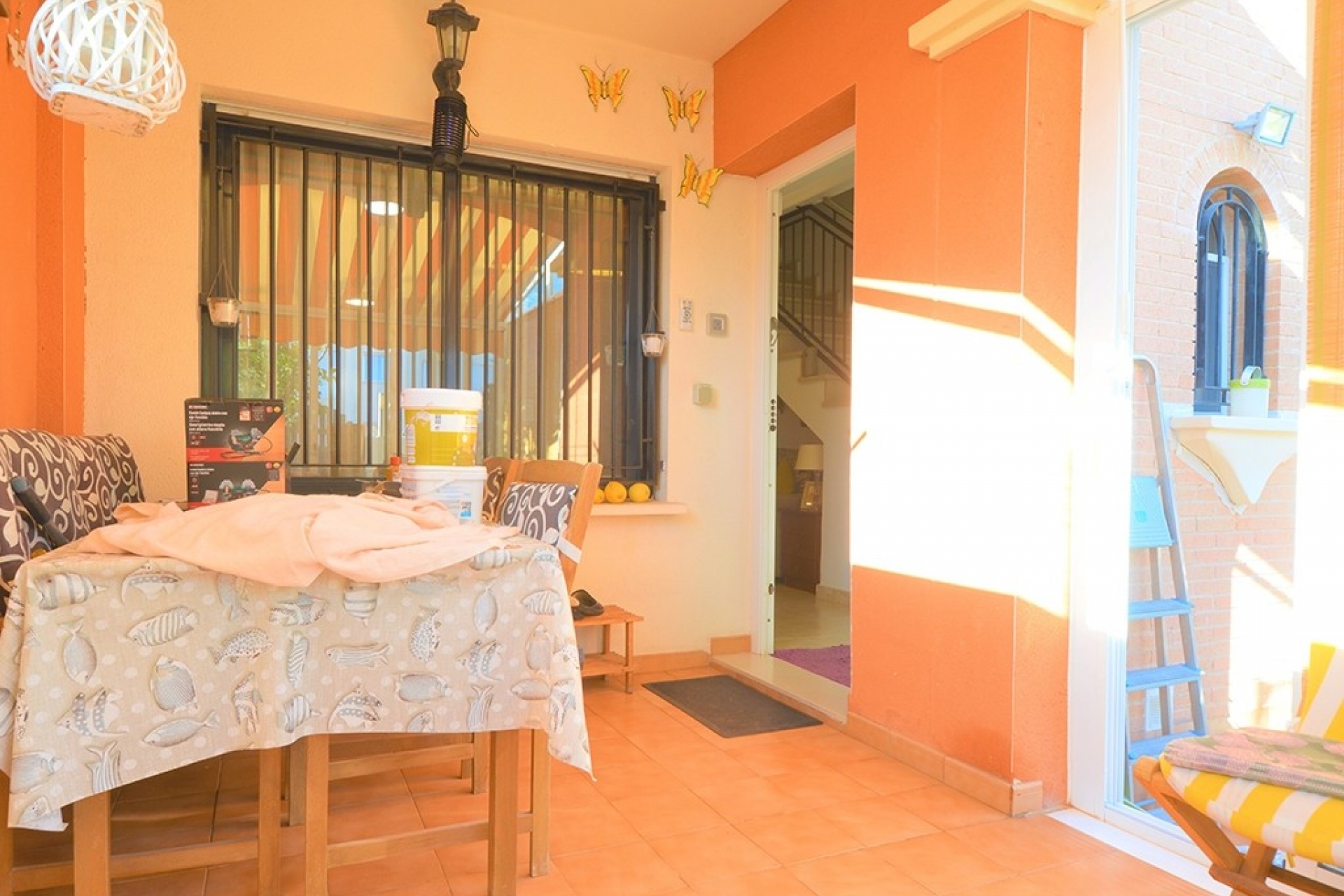 Dom ma kilka tarasów, które zapewniają dużo miejsca w nieruchomości, na pierwszym piętrze znajduje się patio-pralnia połączona z kuchnią, na pierwszym piętrze jest dostęp do pomieszczenia gospodarczego na patio z małym pomieszczeniem gospodarczym, a solarium ma drewniane pomieszczenie gospodarcze.