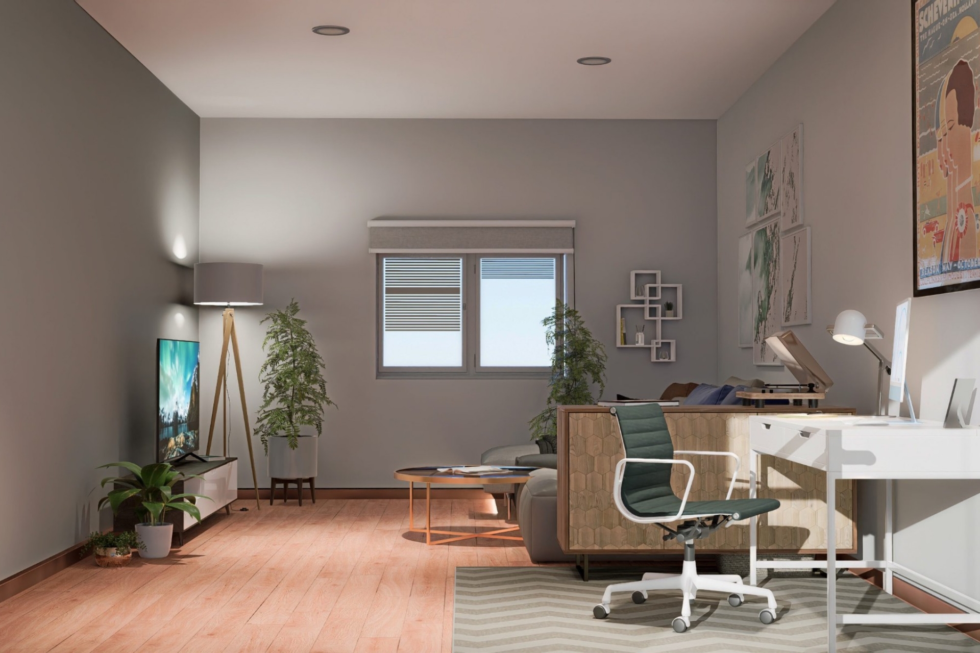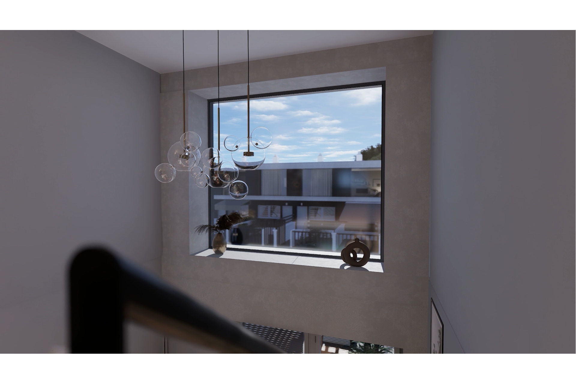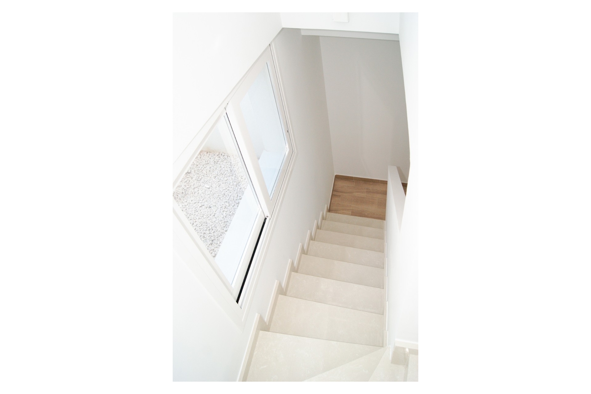 Domy posiadają na parterze salon z jadalnią podwójnej wysokości, bardzo jasny, kuchnię w stylu amerykańskim, sypialnię i łazienkę, a także mały tylny taras. Przed domem szeregowym znajduje się taras, który pierwotnie jest garażem, ale może być wykorzystywany jako taras zewnętrzny. Na pierwszym piętrze znajduje się otwarta przestrzeń (którą można przystosować na sypialnię) oraz sypialnia i łazienka z prysznicem.