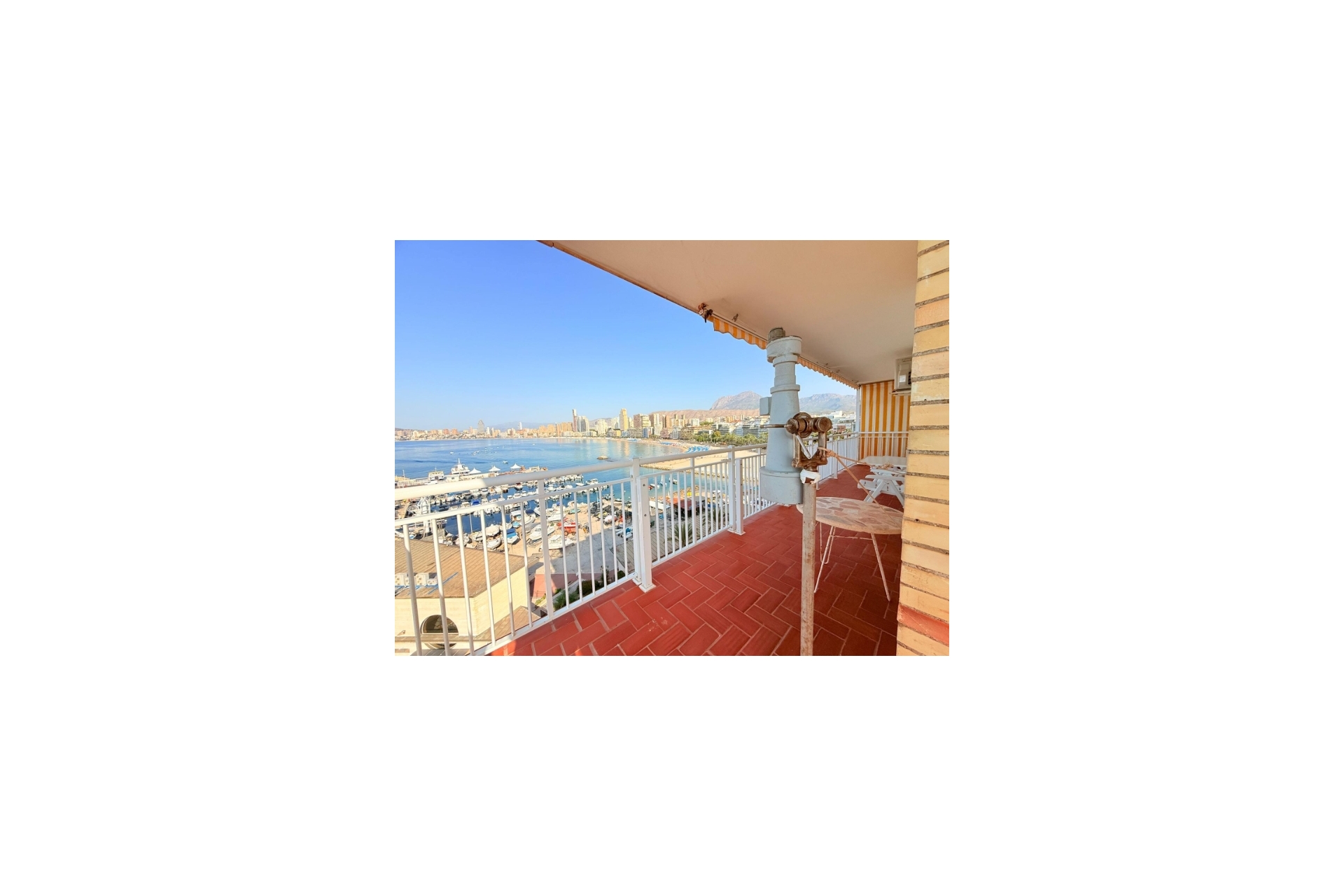 Mieszkanie składa się z przestronnego salonu-jadalni, niezależnej kuchni, z której możesz gotować podziwiając wyspę Benidorm, trzech kompletnych sypialni z wbudowanymi szafami oraz dwóch pełnych łazienek, z czego jedna jest en suite. Z jego wspaniałego tarasu możesz podziwiać widok o kącie 220 stopni, obejmujący od portu w Benidormie aż po charakterystyczny zamek. Ponadto możesz oglądać koncerty i wydarzenia bezpośrednio z domu, ponieważ plaża znajduje się zaledwie 2 metry dalej.