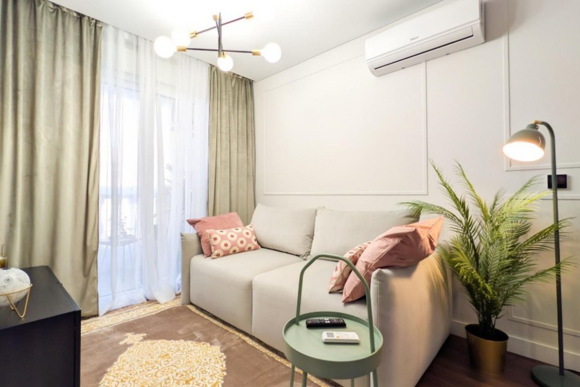 Mieszkanie posiada ogrzewanie podłogowe w całym lokalu, klimatyzację oraz elektroniczny zamek.