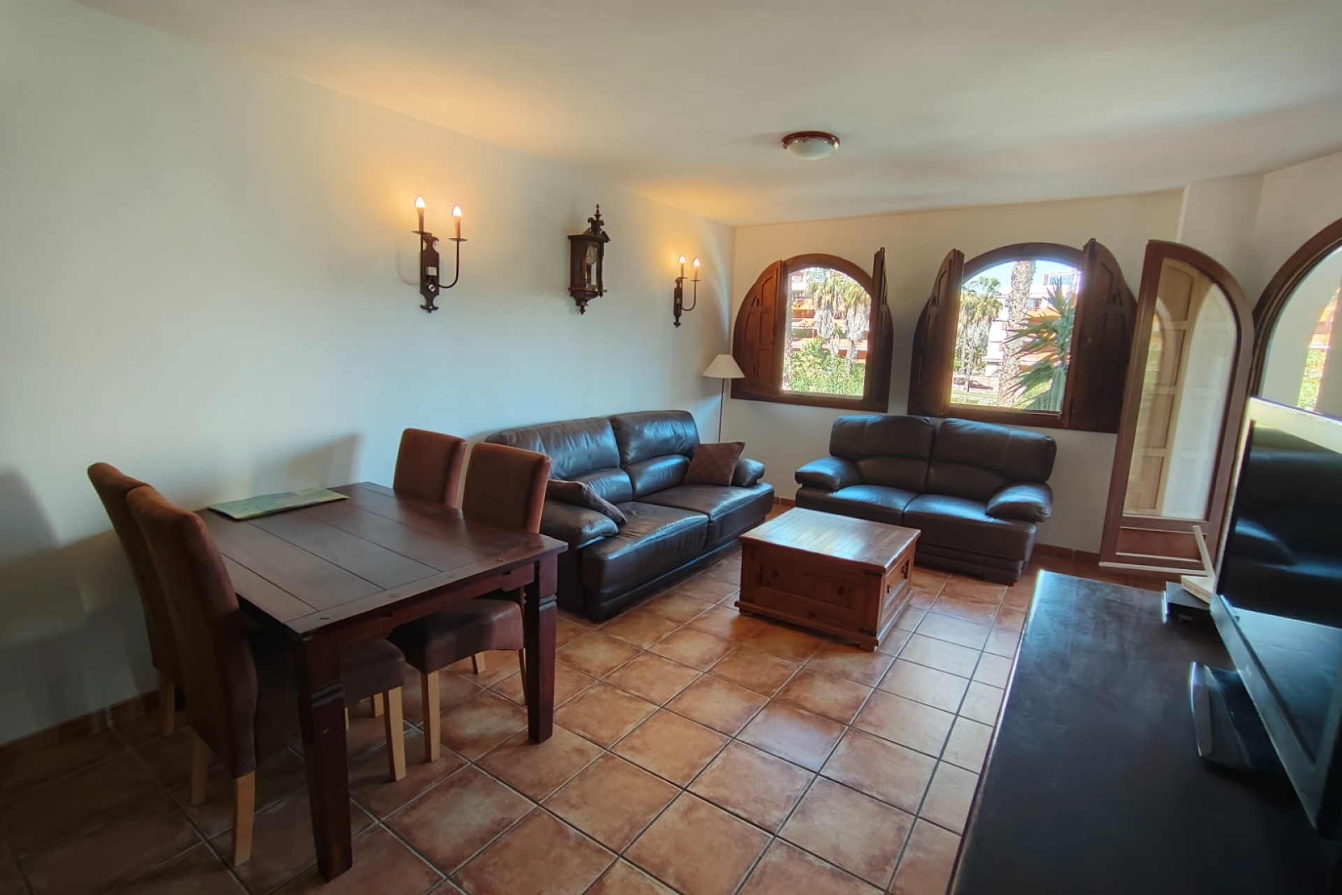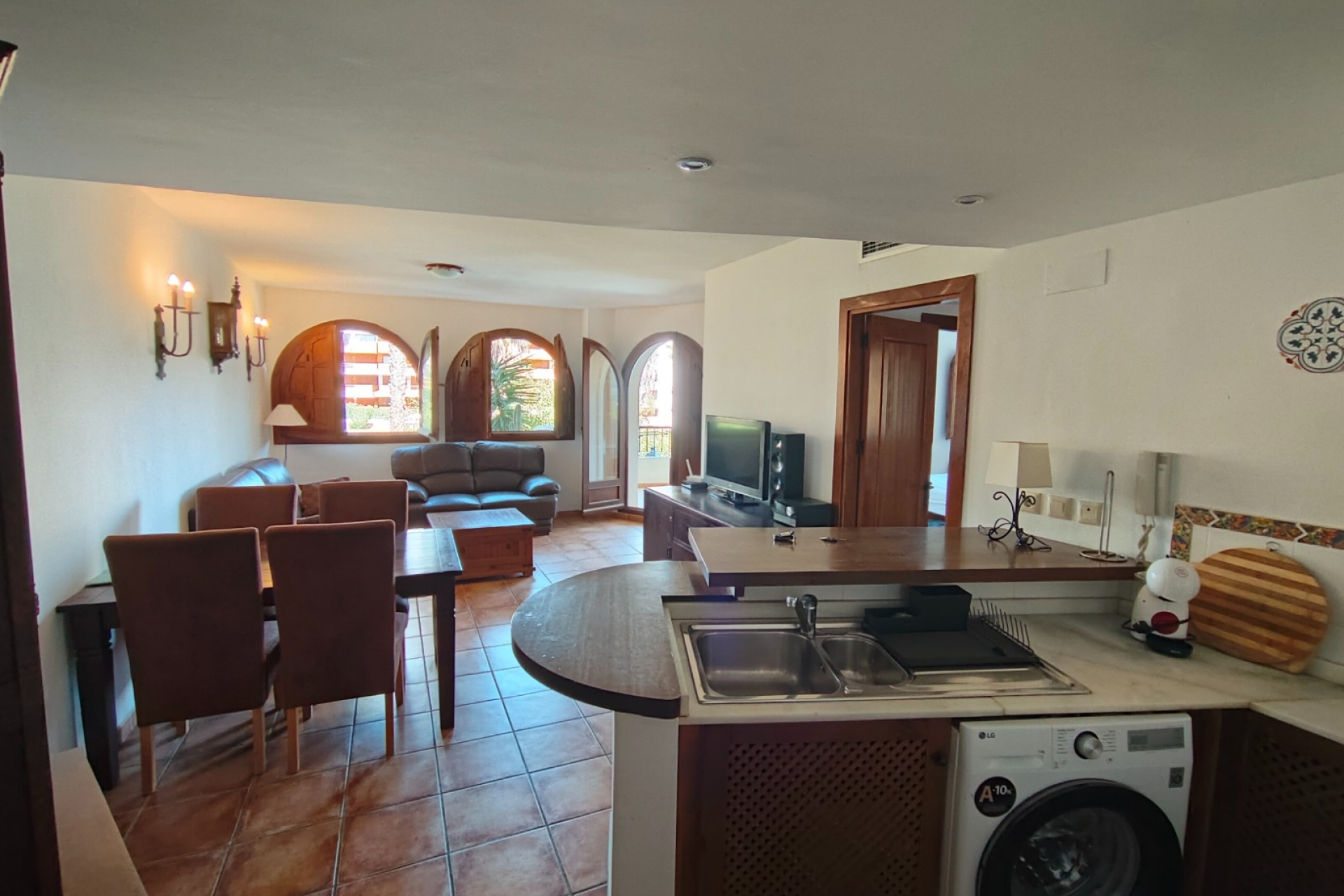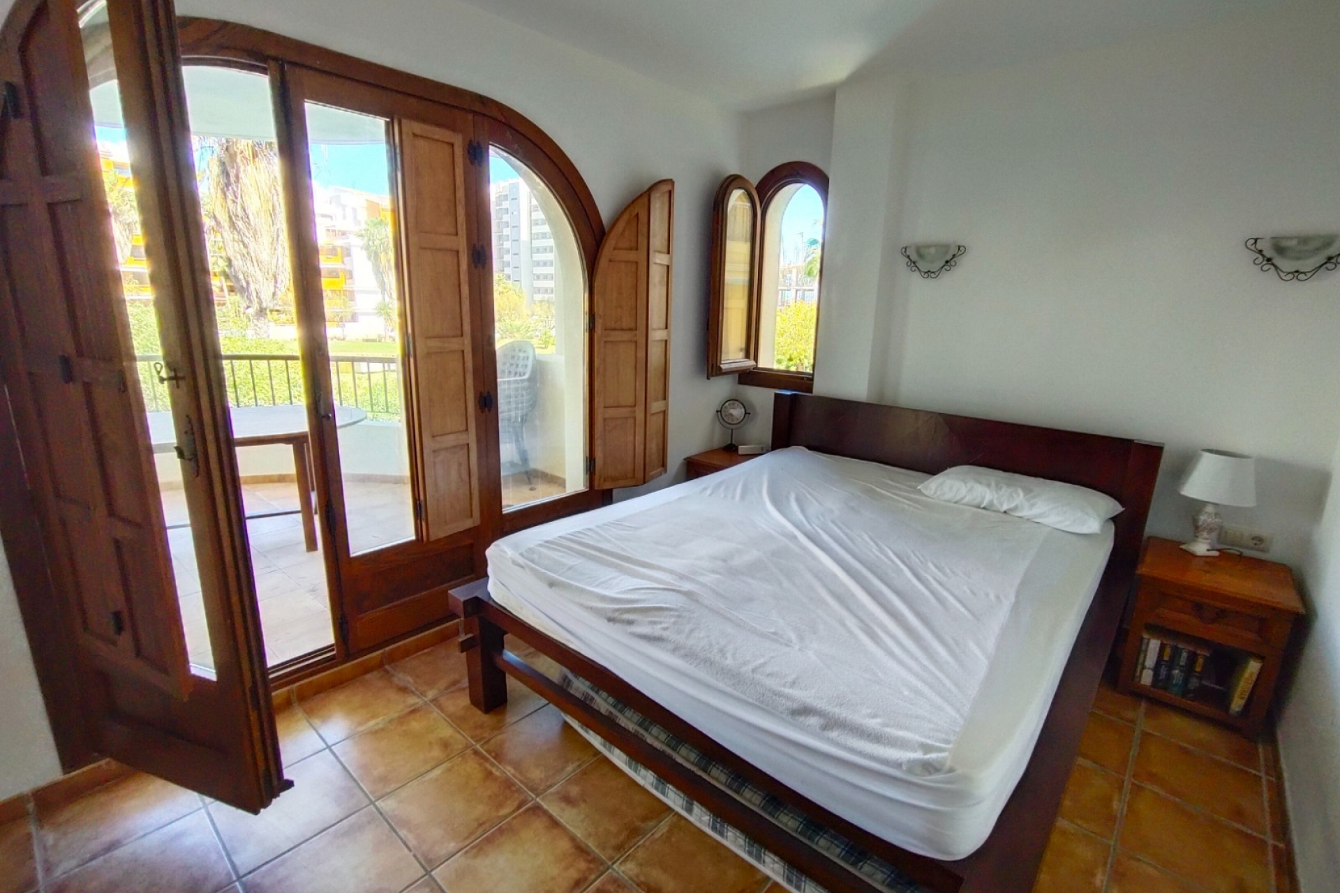 idealnie odwzorowujacy śródziemnomorski styl apartament z dwiema sypialniami jedną łazienką,
