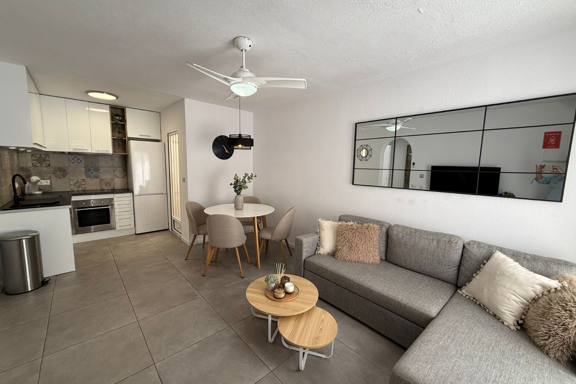 Odkryj ten w pełni odnowiony dom na parterze, położony w zadbanej urbanizacji z ogrodem i basenem wspólnym – idealny do korzystania ze śródziemnomorskiego stylu życia.