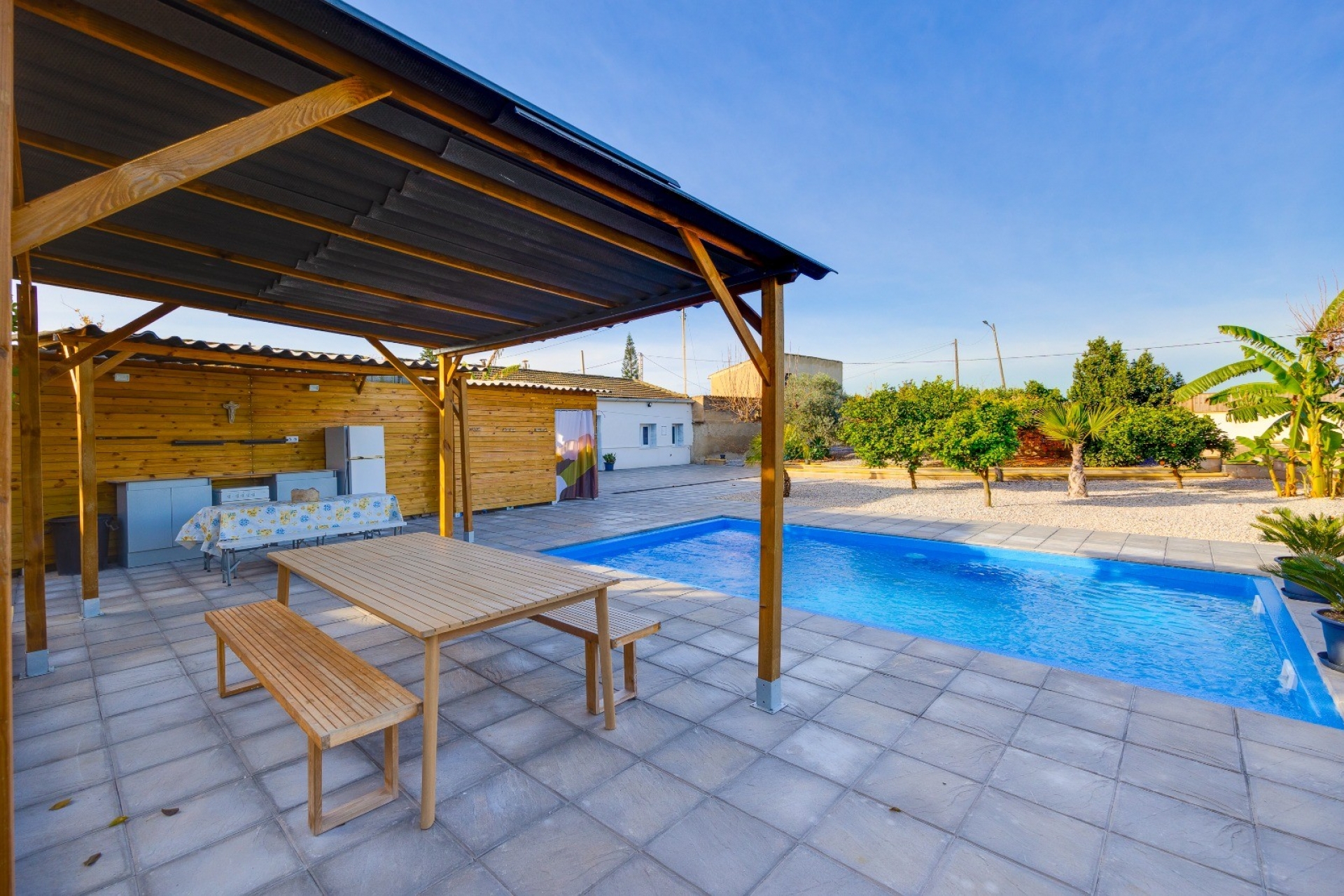 Na sprzedaż wyjątkowy dom po generalnym remoncie, położony w spokojnej okolicy, w otoczeniu natury, idealny dla osób ceniących przestrzeń, prywatność i komfort życia. Nieruchomość znajduje się na dużej działce o powierzchni 1400 m², ozdobionej drzewami owocowymi, co pozwala cieszyć się śródziemnomorskim stylem życia przez cały rok.