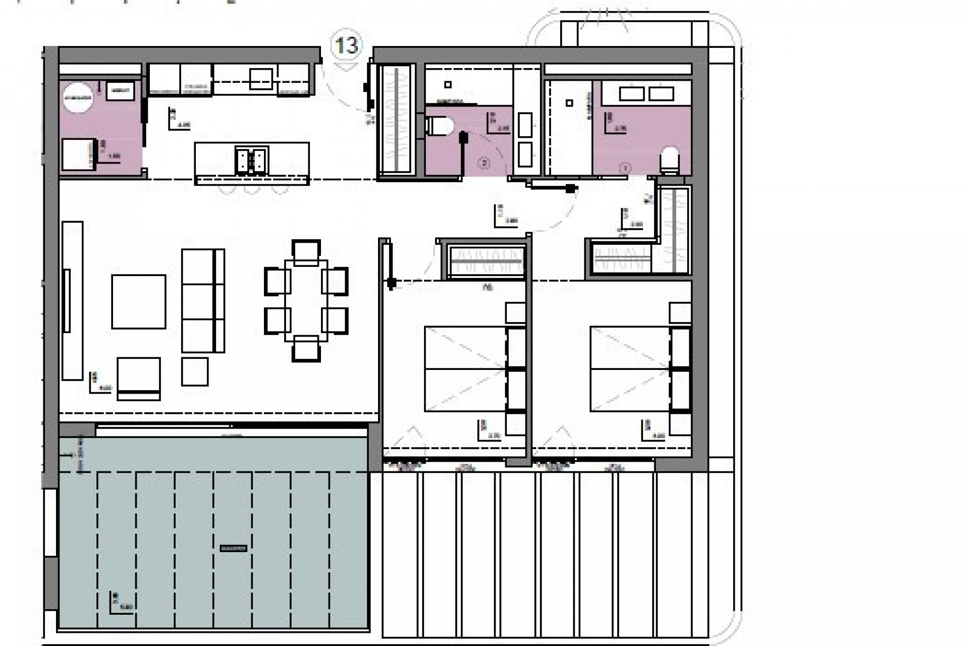 Nowoczesne apartamenty z 2 lub 3 sypialniami. Przestronne, jasne wnętrza, duże prywatne tarasy i funkcjonalny układ.