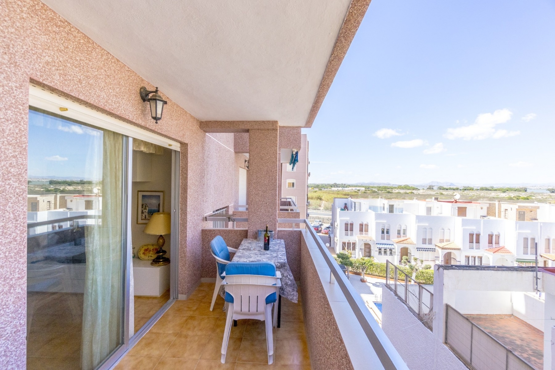 Apartament na trzecim piętrze w La Mata, Torrevieja. Ma powierzchnię około 84 m2, 3 sypialnie, salon, 1 łazienkę, otwartą kuchnię, w pełni wyposażoną. Taras z niezakłóconym widokiem na Lagunas de La Mata. Orientacja północno-zachodnia. Sprzedawane umeblowane. Urbanizacja oferuje wspólny basen i tereny zielone. Jest też wspólny parking. Wspólnotowe solarium. 5 minut spacerem do centrum La Mata i wszystkich usług oraz 300 m od plaży. Idealny na wakacje lub do zamieszkania przez cały rok.