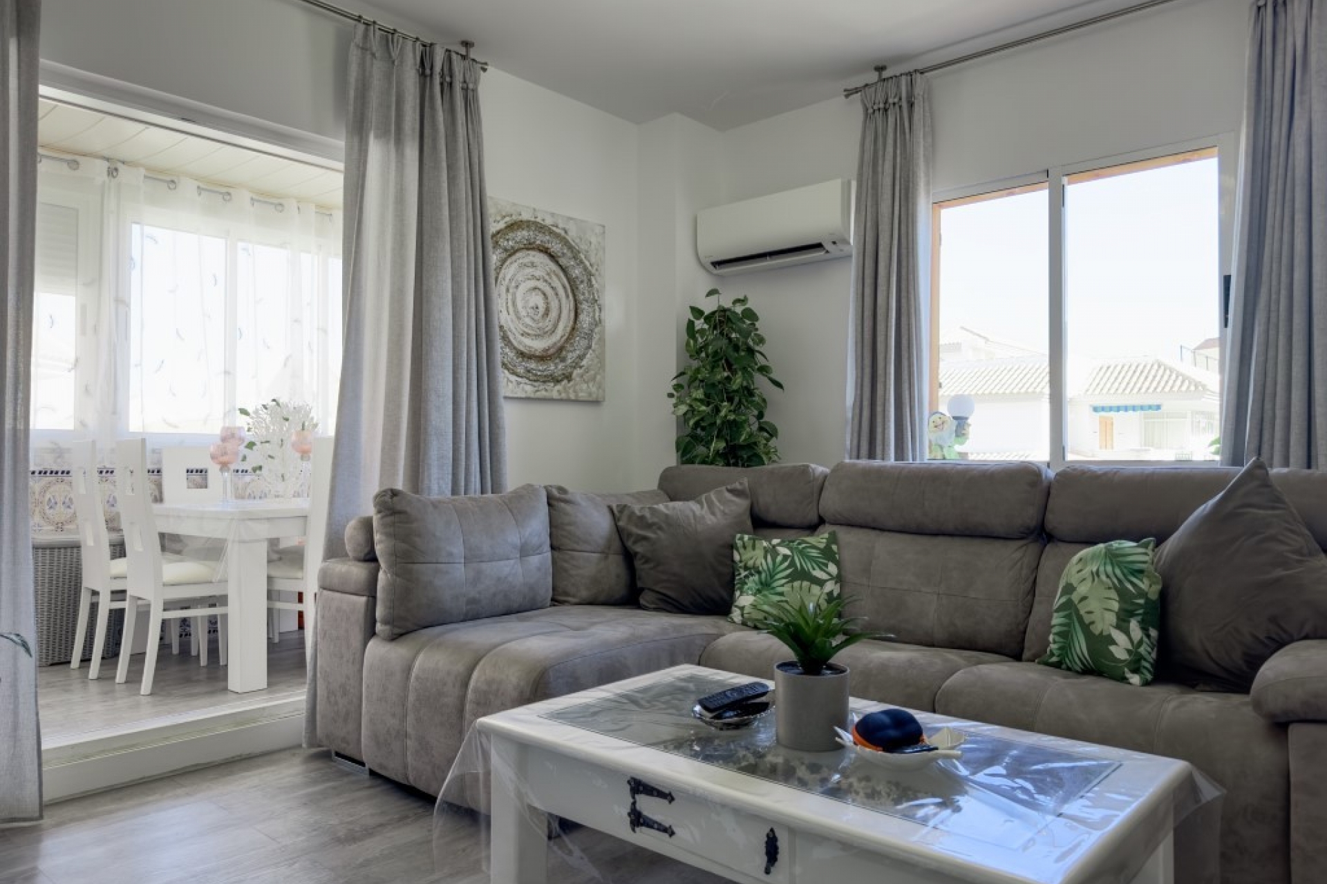 Prezentujemy apartament typu penthouse zlokalizowany w popularnym kompleksie mieszkaniowym Viñamar 4, 200 metrów od plaży La Mata.