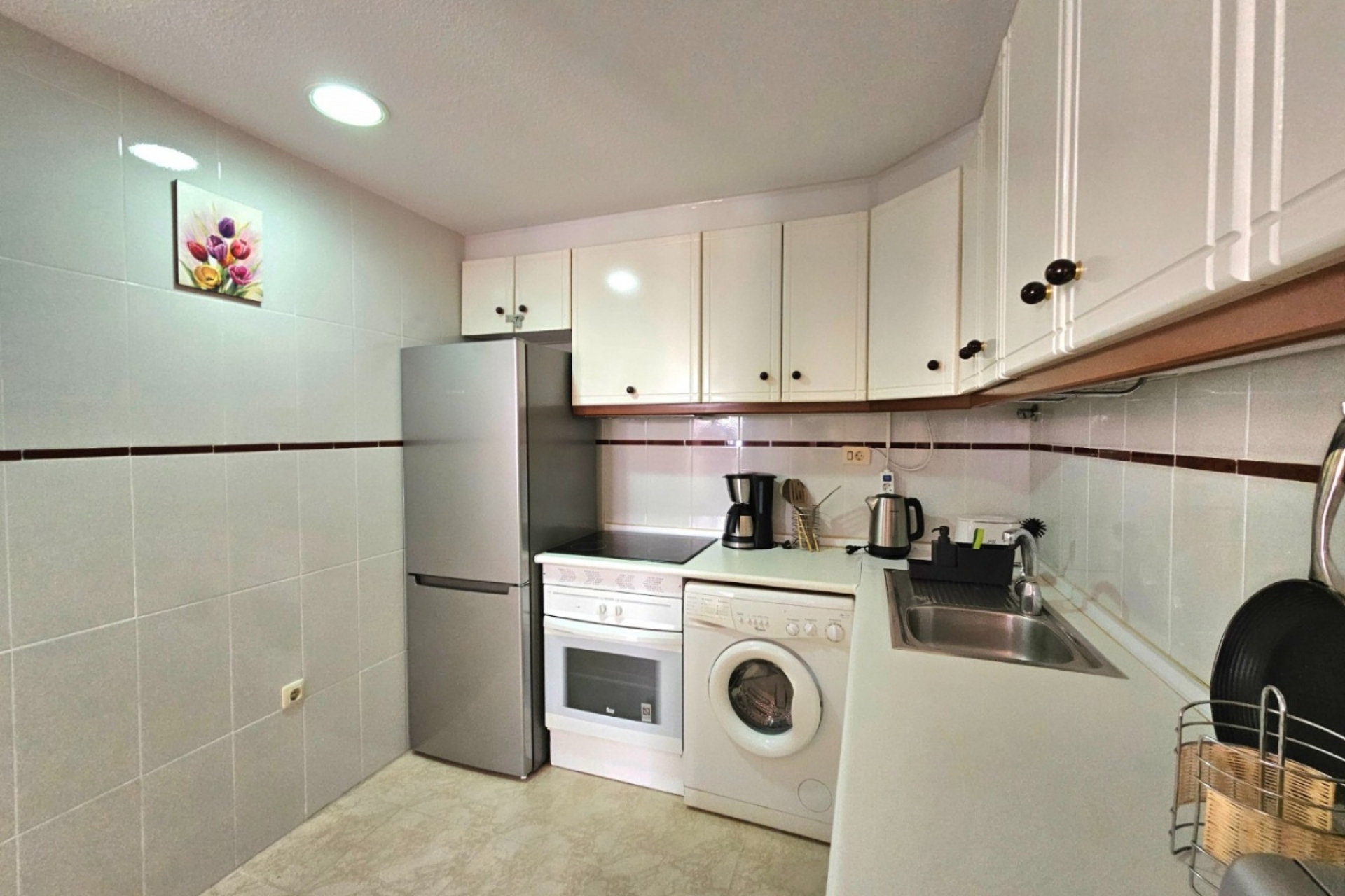 Przestronna i w pełni wyposażona kuchnia, przeszklony taras z widokiem na wspólny basen, 3 klimatyzatory (ciepło/zimno), sprzedawane z meblami i sprzętem AGD.