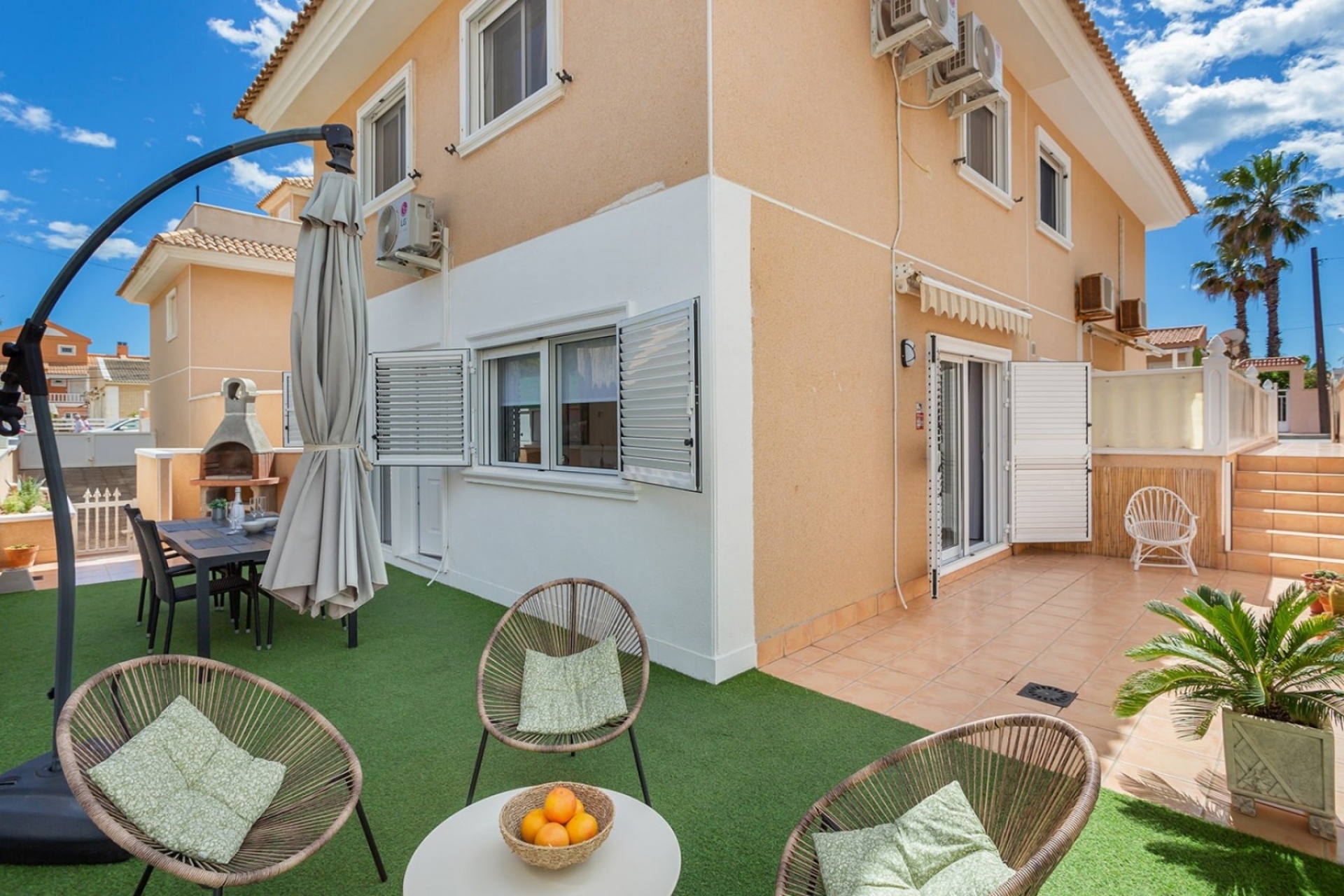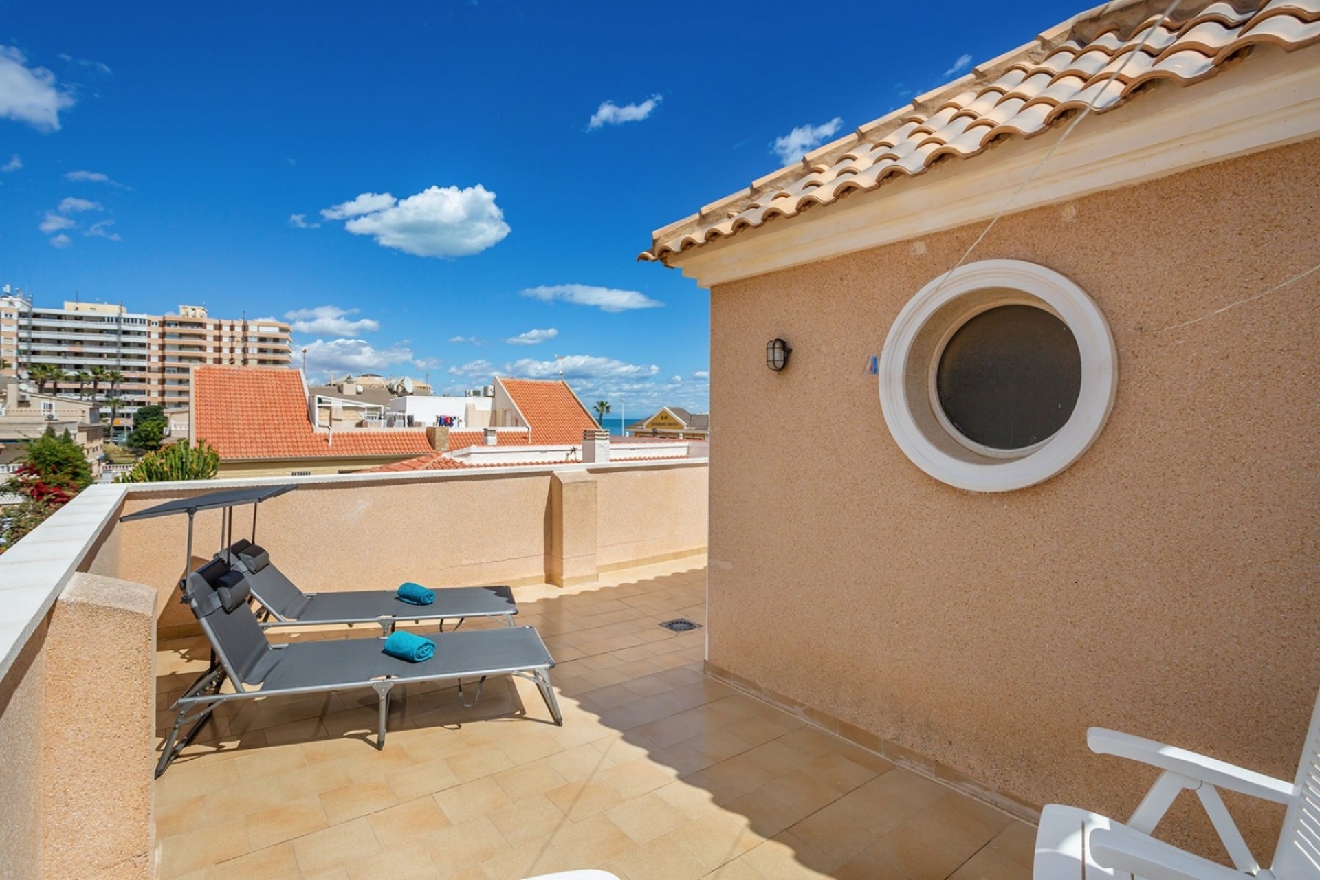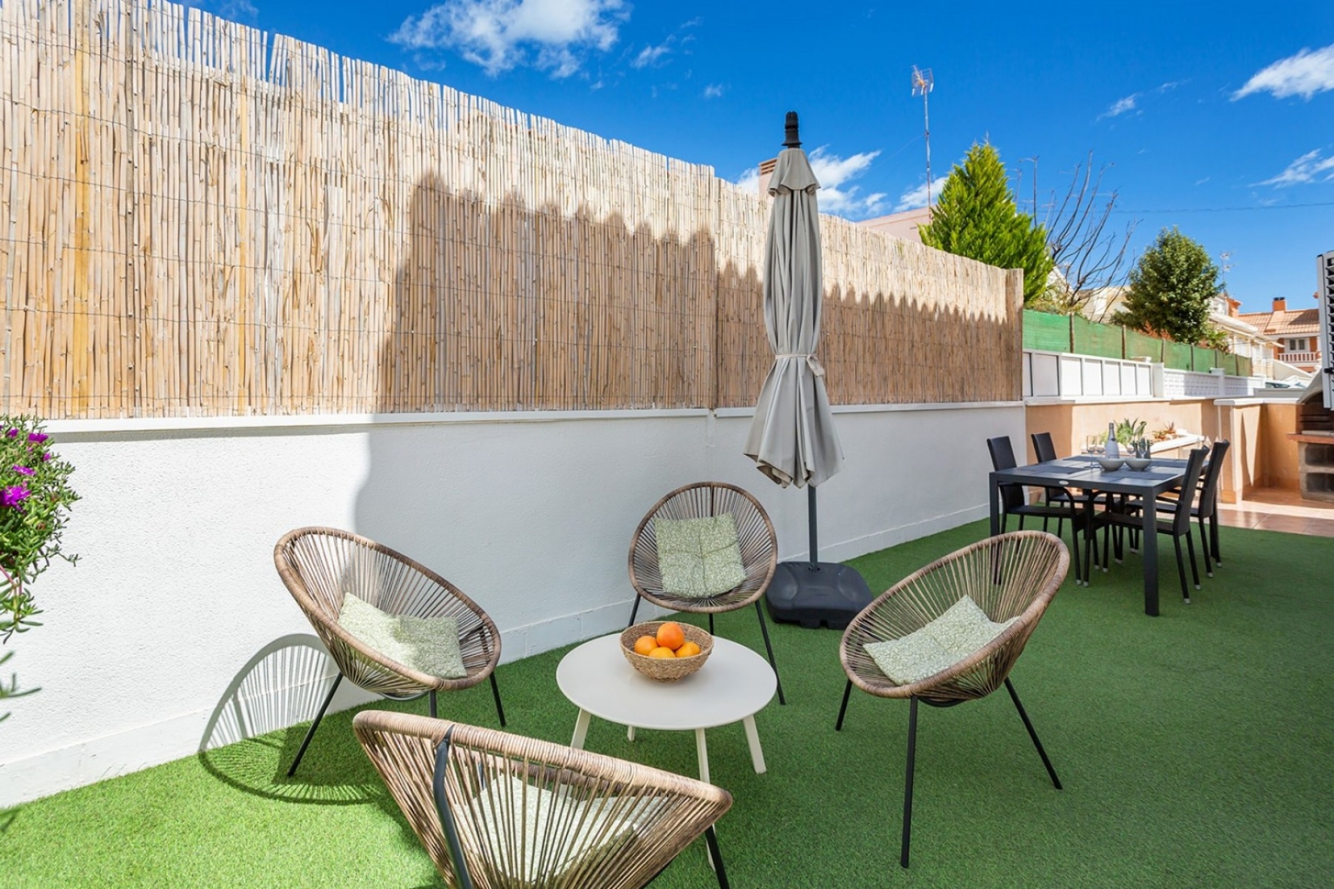 Bardzo dobrze zlokalizowany i w pełni umeblowany nowoczesny dom w La Mata z 3 przestronnymi sypialniami, nowoczesną łazienką z prysznicem i oddzielną toaletą dla gości. Salon / jadalnia ma bezpośredni dostęp do przestronnego tarasu o powierzchni 77 m2 od strony północno-zachodniej.