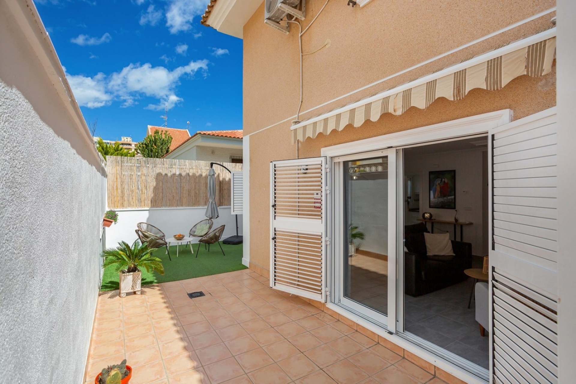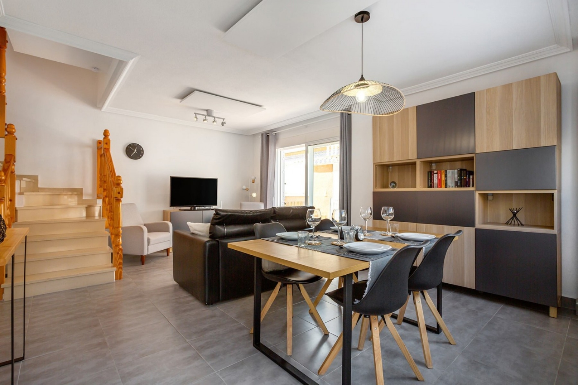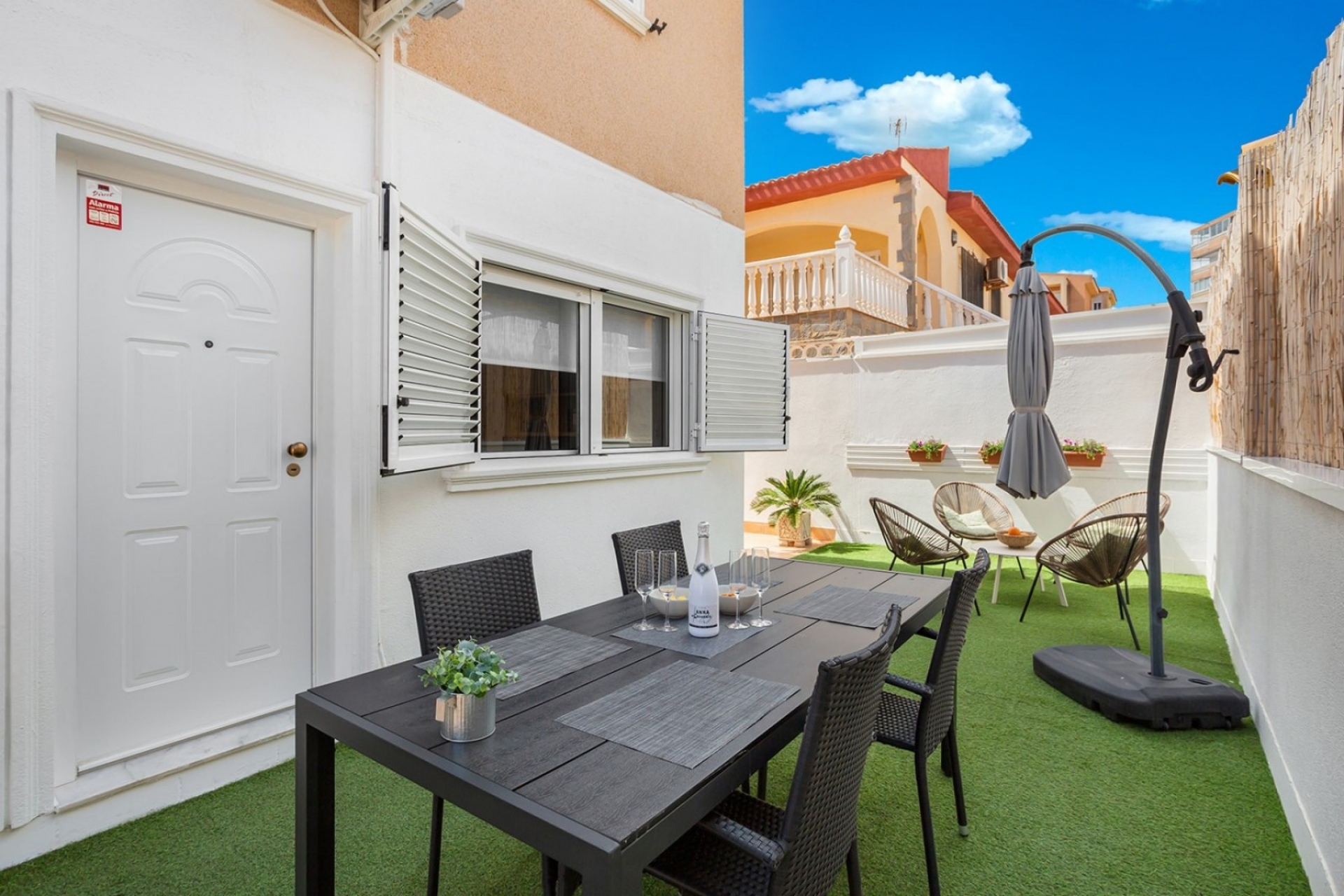 Bardzo dobrze zlokalizowany i w pełni umeblowany nowoczesny dom w La Mata z 3 przestronnymi sypialniami, nowoczesną łazienką z prysznicem i oddzielną toaletą dla gości. Salon / jadalnia ma bezpośredni dostęp do przestronnego tarasu o powierzchni 77 m2 od strony północno-zachodniej.