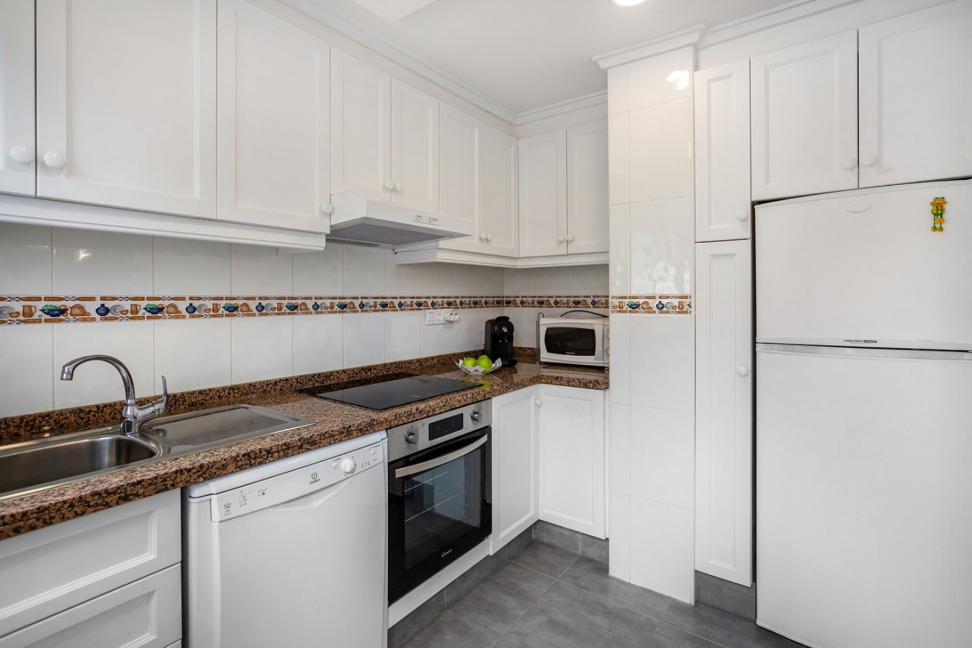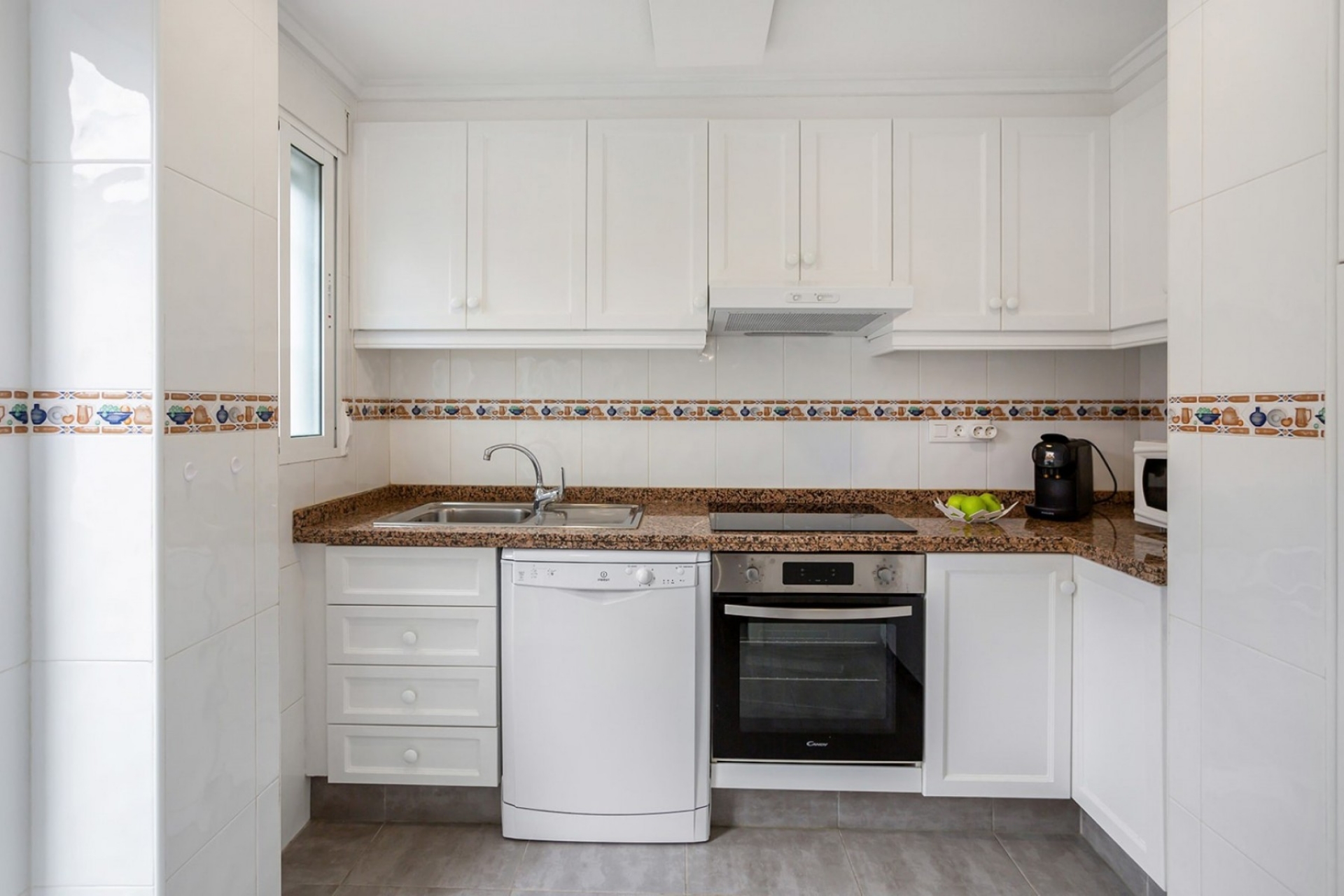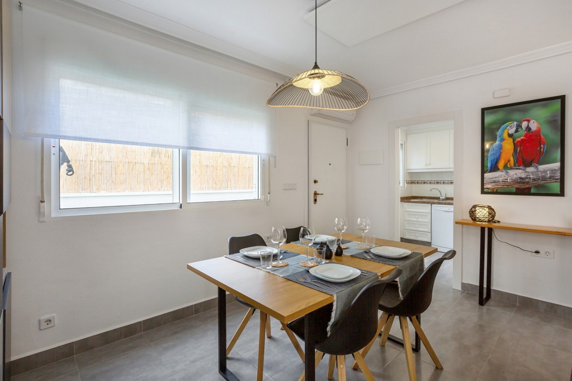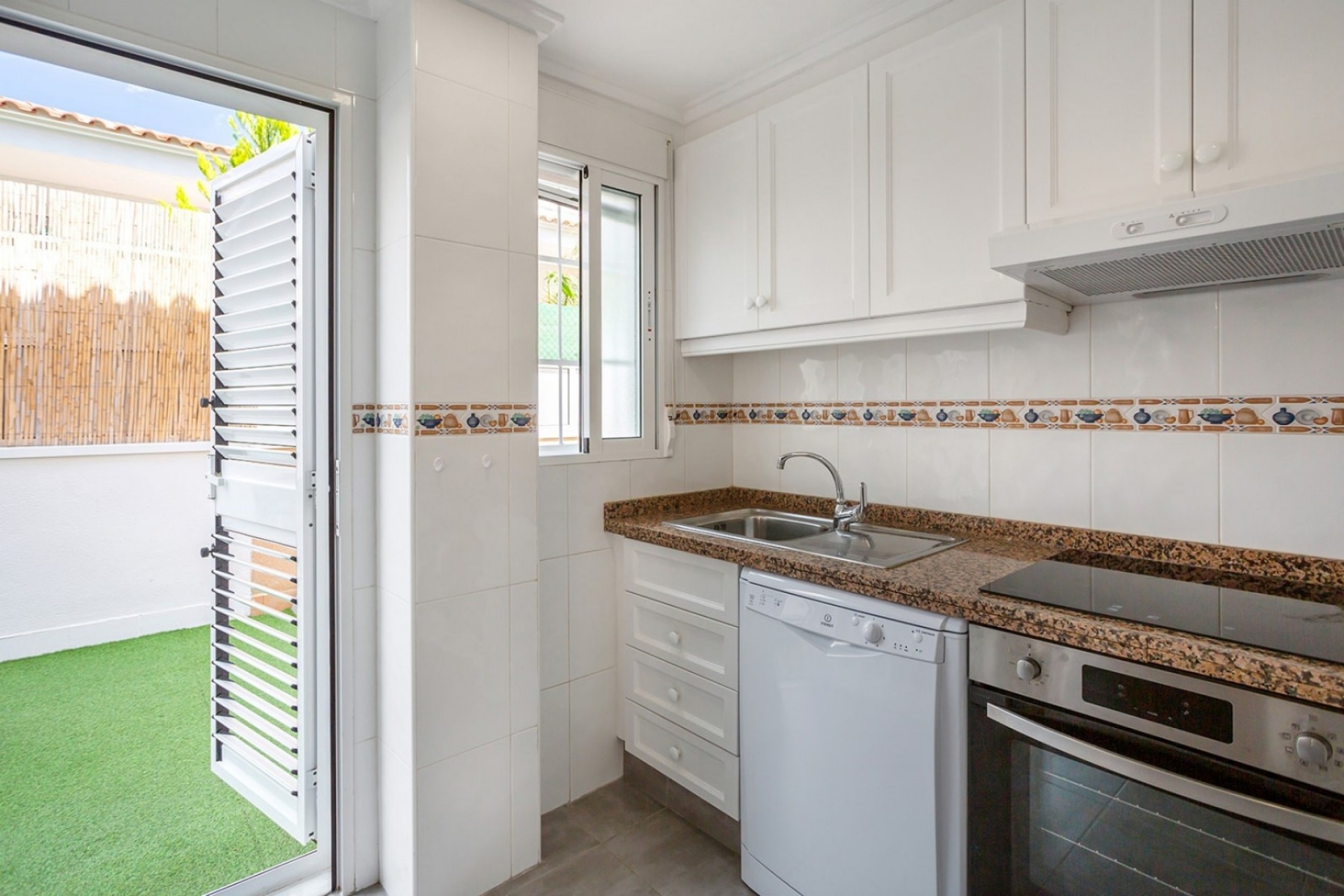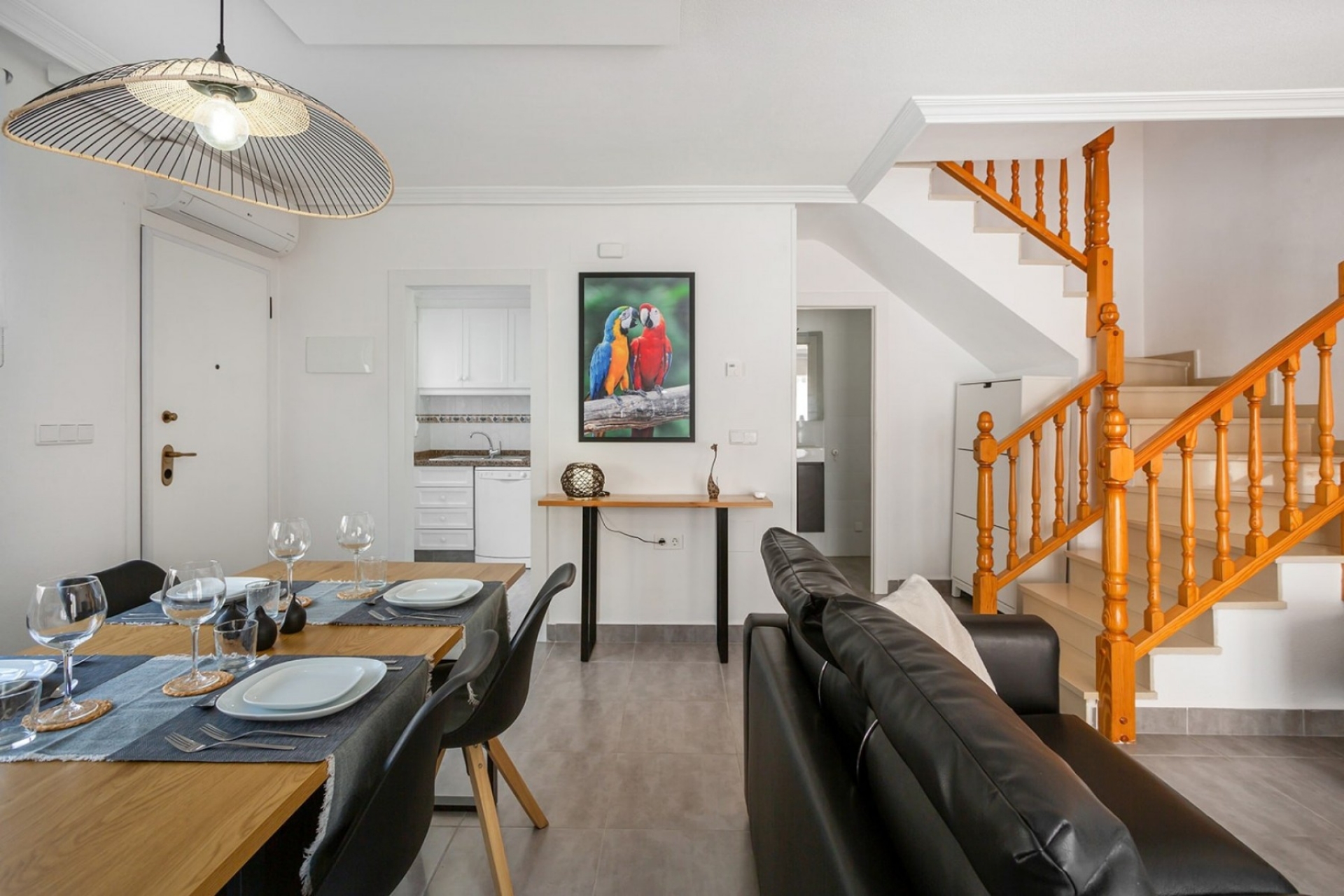 Niezależna kuchnia jest również bardzo praktyczna i ma bezpośredni dostęp do tarasu. Ta kamienica ma piękny układ i jest sprzedawana w pełni umeblowana. Na parterze, oprócz jasnego salonu / jadalni i przestronnej kuchni, znajduje się duża toaleta dla gości.